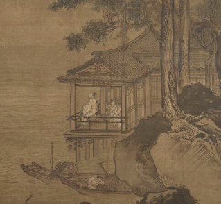 ▲灵感来源 南宋 马远《松阁观潮图》局部
