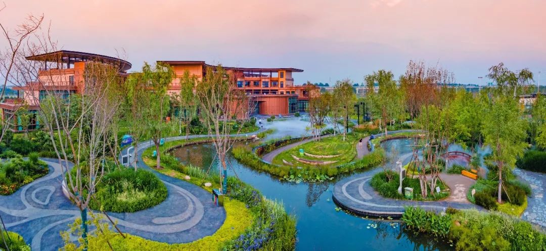 唐山城市展园设计方面突破多种难题,总体设计以生态优先、创新设计、文化赋能及智慧驱动四大设计理念为引领,围绕“英雄城市、绿色唐山”的主题定位开展全园建筑及景观设计。