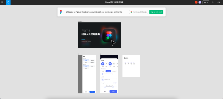 如果您需要查看设计图标注和导出切图,那么就必须要登录账号之后才有权限。Figma 可以通过 Google 账号直接登录。如果上不了谷歌,可以用自己的邮箱注册一个账号即可登录。如果您确实不方便注册,那么可以使用设计团队注册的内部公共账号作为临时使用。