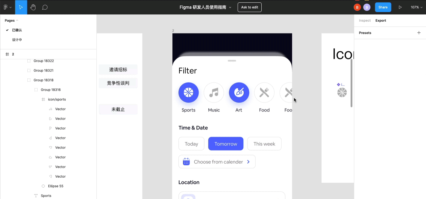 2、设计图内单独导出图标/切图