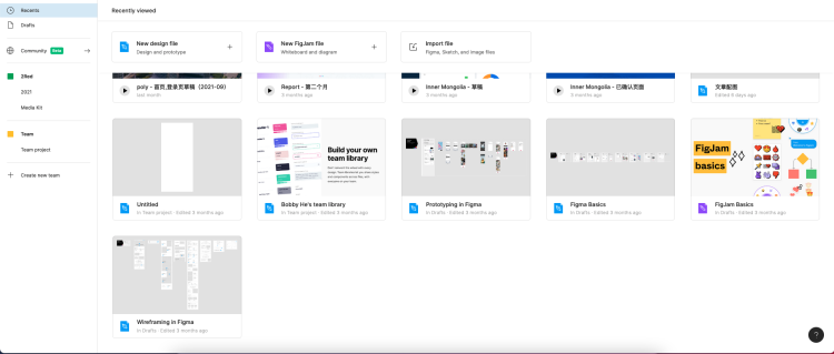 回到文件列表后,在默认选中的“Recents(最近)”中可以看到我们最近打开过的所有的文件,所以把这个链接收藏后,便可以不用每个设计文件链接都收藏了。