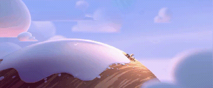 雪 - 当时想到要做雪非常突然,动画部分,分为两种:特写镜头,这部分用blendshapes完成,这能确保我们更灵活地调整;山的部分则在Houdini中完成。