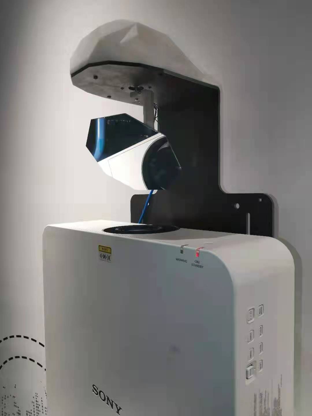 也就是说,这个设备可以让投影机在不动的情况下,仅通过一片可旋转的光学平面镜反射就能实现创意移动呈像,最终实现影像画面与真实景观的完美结合。是不是灵活方便又充满无限魅力?