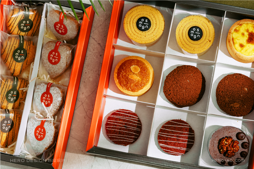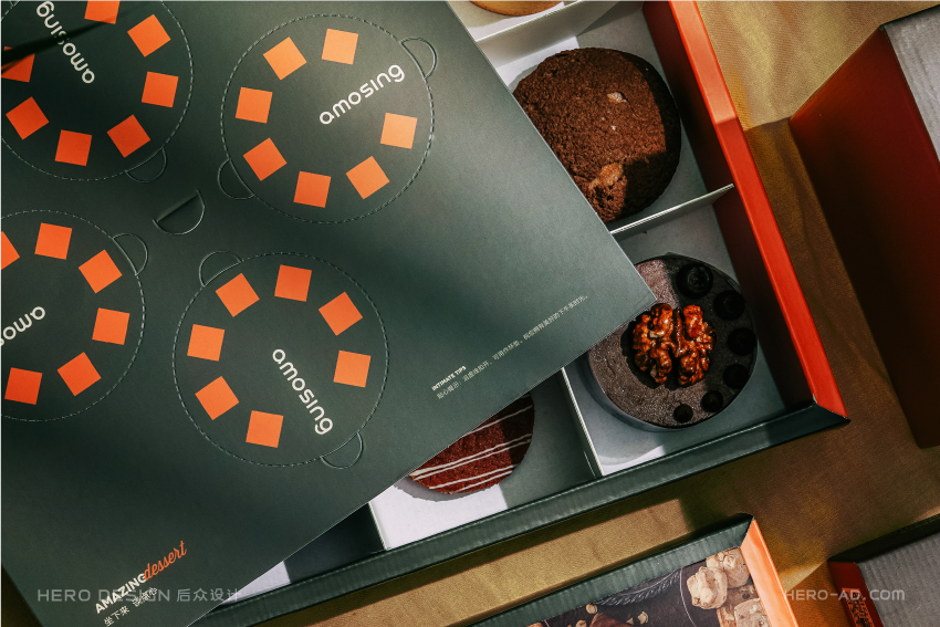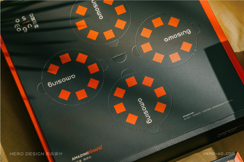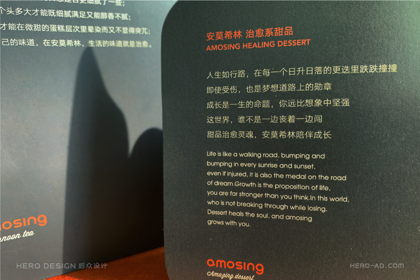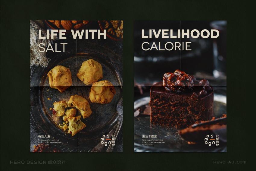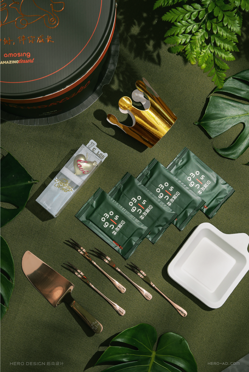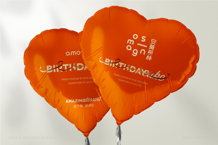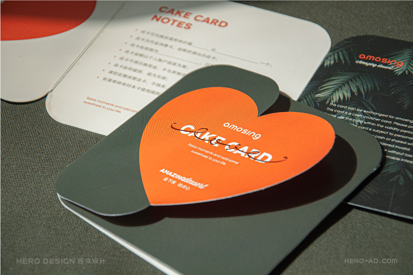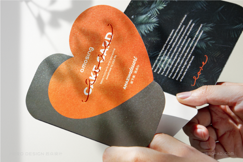 基于心形蛋糕的创意概念,我们在安莫希林心蛋糕相关营销物料的设计中,反复使用心形元素,从心形模型再到心形图案,将心形做为安莫希林心蛋糕的超级符号,从命名到产品到营销物料,完成对安莫希林心蛋糕心形符号的最大化诠释与强化。