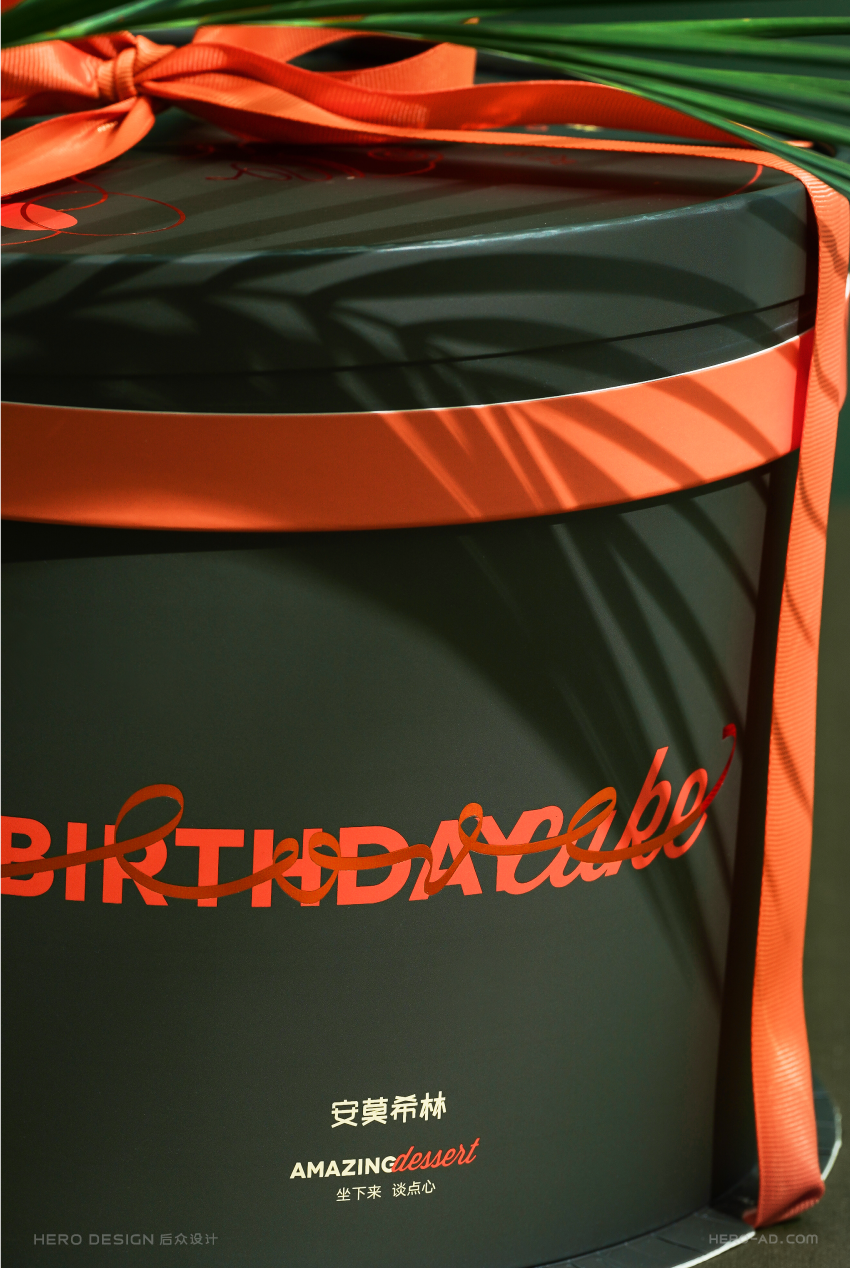 安莫希林心蛋糕的产品包装我们采用了圆形盒型的设计,圆形的蛋糕盒流行于蛋糕行业发展的早期,后来由于工艺的复杂程度以及稳定性逐渐被淘汰,此次,我们大胆的重新启用圆形的盒型设计,完全是为了做到百分百适配心形蛋糕的形状特点,让心形与圆形在造型的搭配上更加和谐自然,增强产品整体统一的视觉感受,强化品牌治愈系的品牌定位,打造具有极致安莫希林治愈风格的专属造型识别。