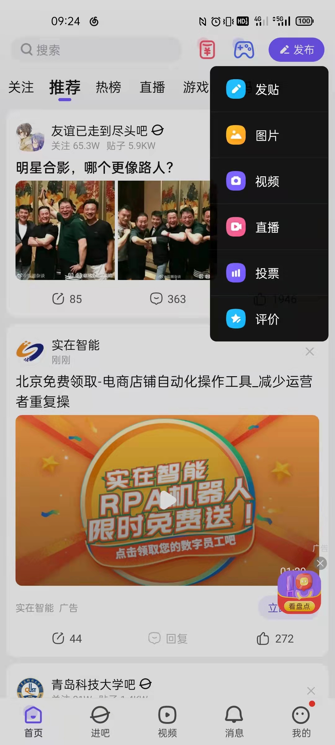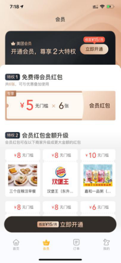 3.菲茨定律:“目标越远,选择目标所花时间越长;目标越大,选择目标时间越短”。讲的是如何减少用户操作的时间,提高效率。因此要让目标变大,离得更近。例如在百度贴吧发帖时,点击发布按钮,会在发布按钮下弹出发布的类型,而没有从屏幕下方弹出(尽管屏幕下方是手指操作舒适区),这样便减少了手指的移动距离。在比如进入美团的会员页面,开通会员按钮就在下面手指操作舒适区,并且大而醒目。