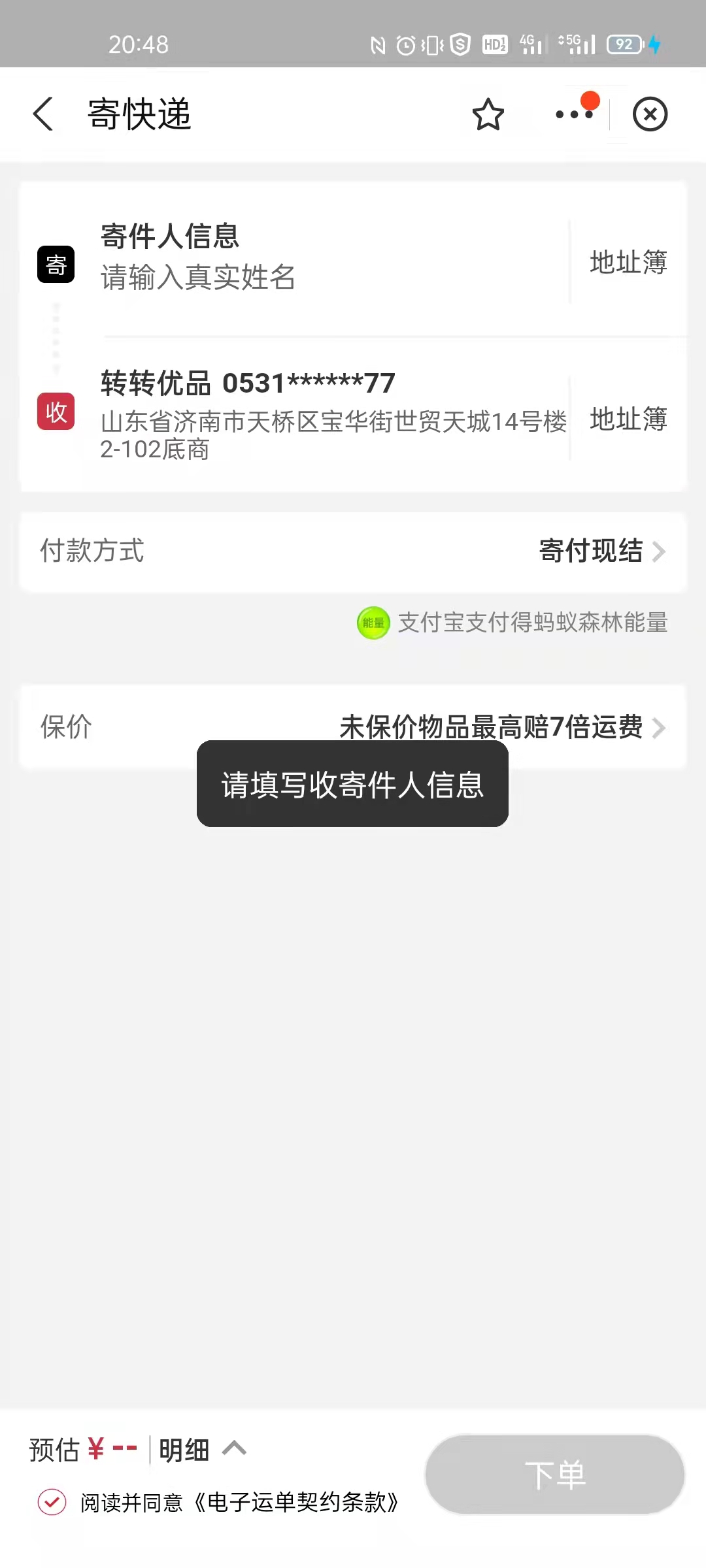 7.防错原则:“用户出错是不可避免的,要帮用户减少出错的可能性”。因此要在操作前有提示,操作后有反馈。比如在顺丰快递中,填写的信息会给出明确的提示,并且当信息不全时不能下单。