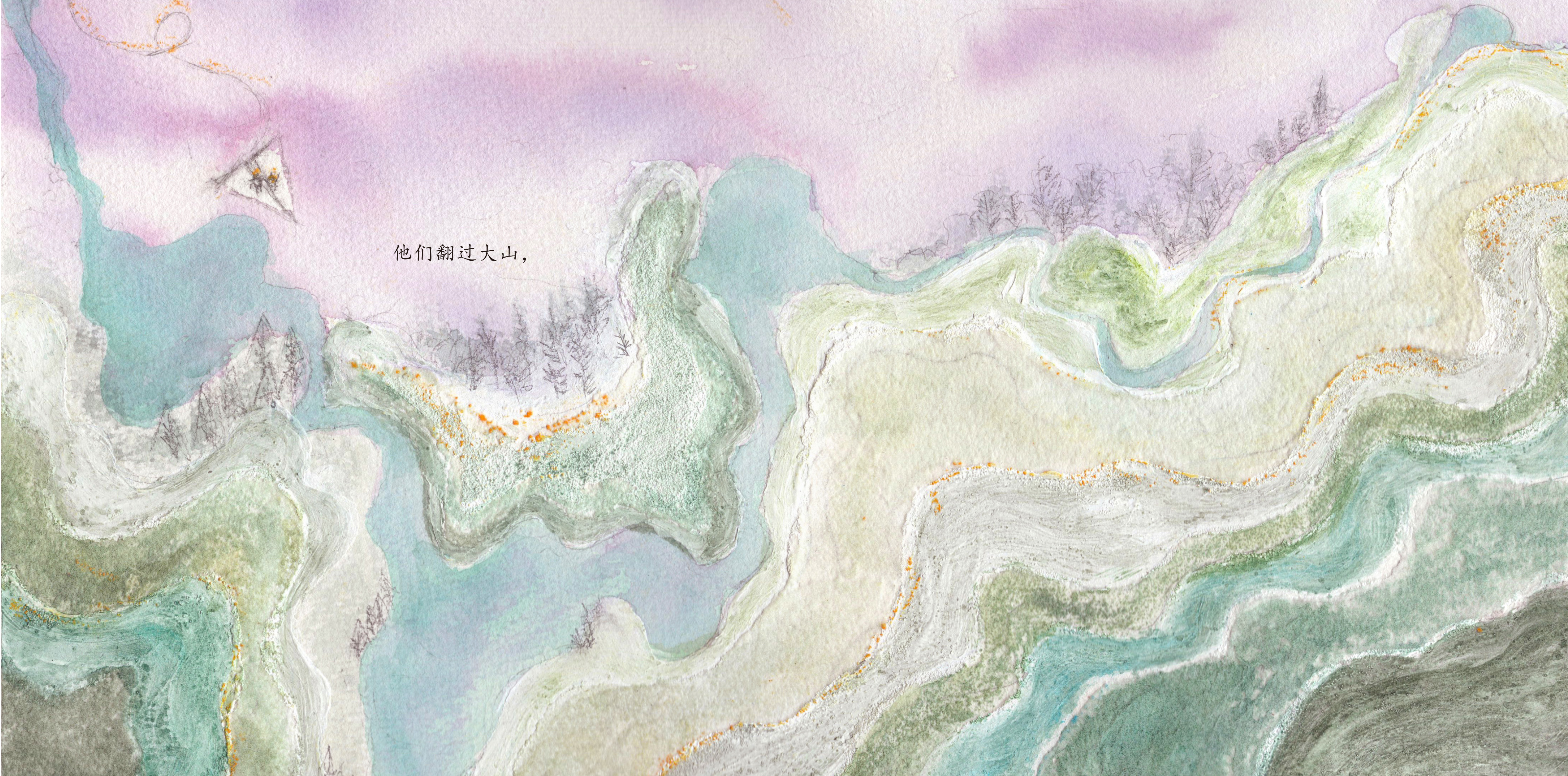 继续在第四天的训练营中,使用老师推荐的丙烯肌理膏做尝试,再次打开自己~做了门牙兄弟游历时俯瞰山川的俯视视角画面。