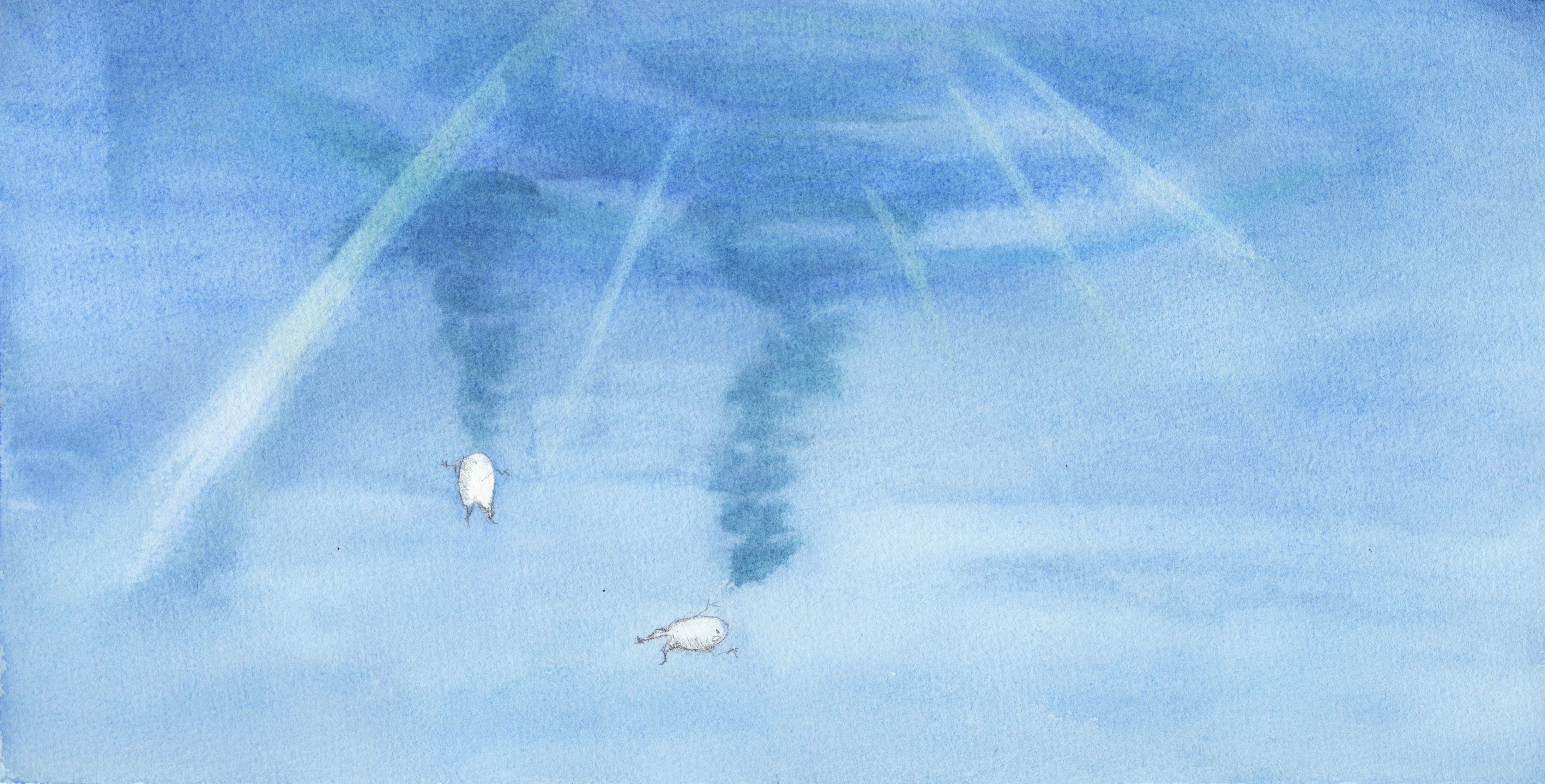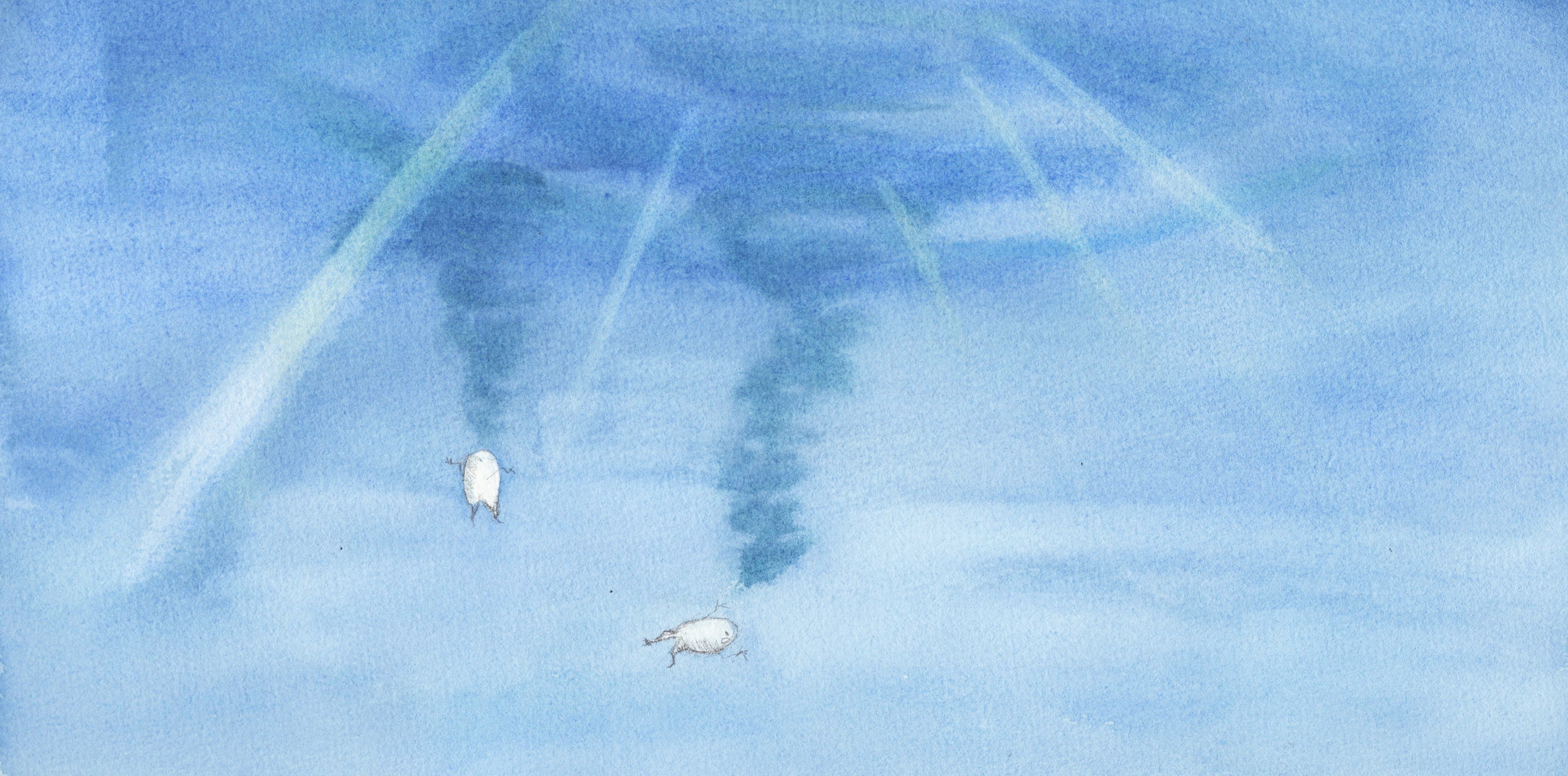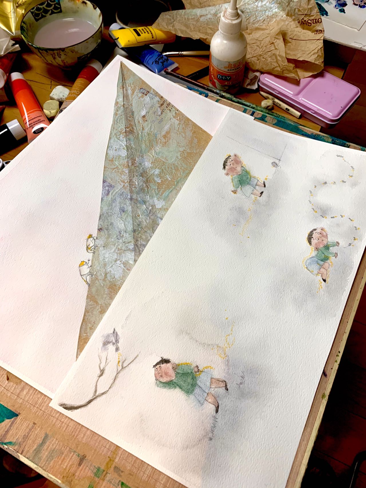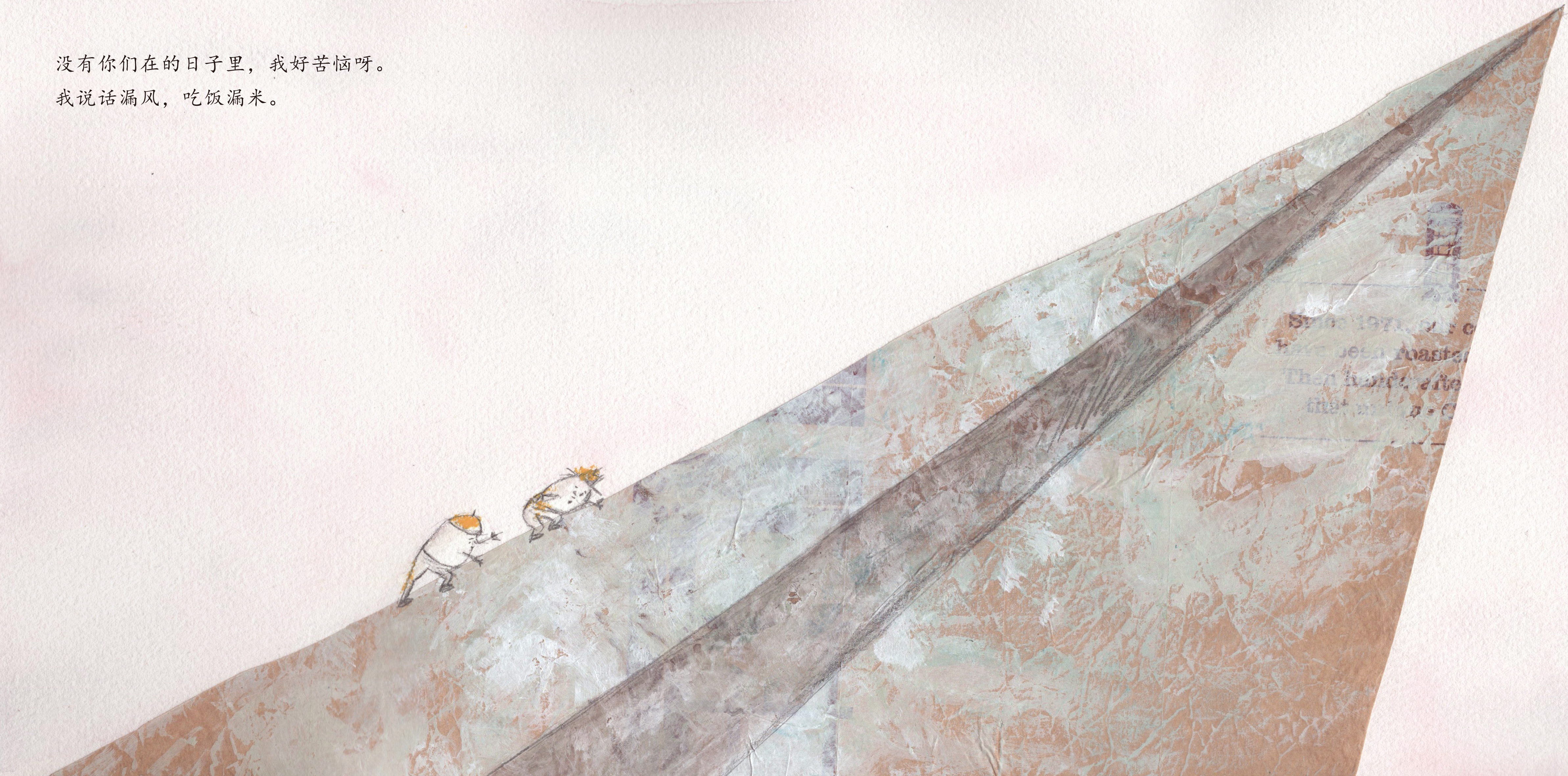 不断的尝试才能知道自己到底适合什么和需要什么样的技法来支撑画面,我用了早餐costa送来的面包纸袋做了门牙兄弟逃走时的纸飞机,偶然的尝试了拼贴的技法。