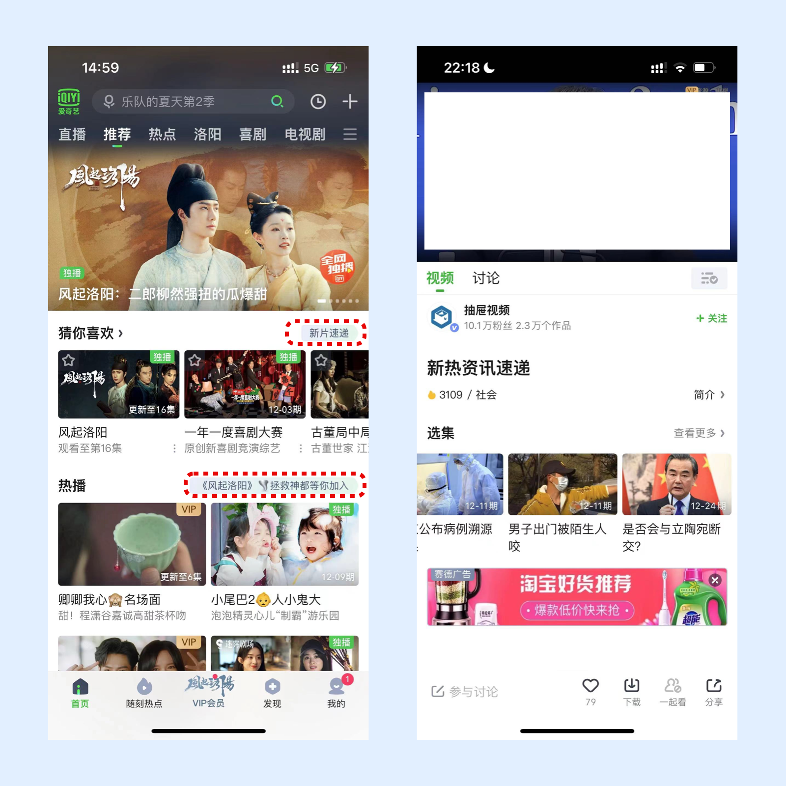 11.21 “爱奇艺”首页feed中穿插推荐封面的弹幕