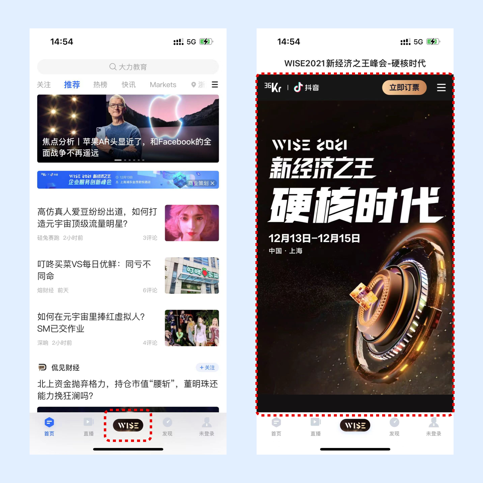 36氪这一期更新了一整版的运营专区,这里与其他产品不同的是一整版都是一个多动,更多产品这里还是会区分出不同的区域用更多的内容填充在页面中,保证有不同的活动吸引不用的用户群来参加。36氪这里是会更大胆的使用了整版,加上活动本身的视觉夺目,效果还是很好的。