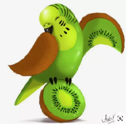 这个案例跟上个案例其实非常相似,都是 MIX 系列的卡通 LOGO 这个 LOGO ,这个 LOGO 灵感来源于我偶然在网上看到了这张图片,以猕猴桃代替了鹦鹉的翅膀,配色也完全不违和,是非常优秀的作品了。