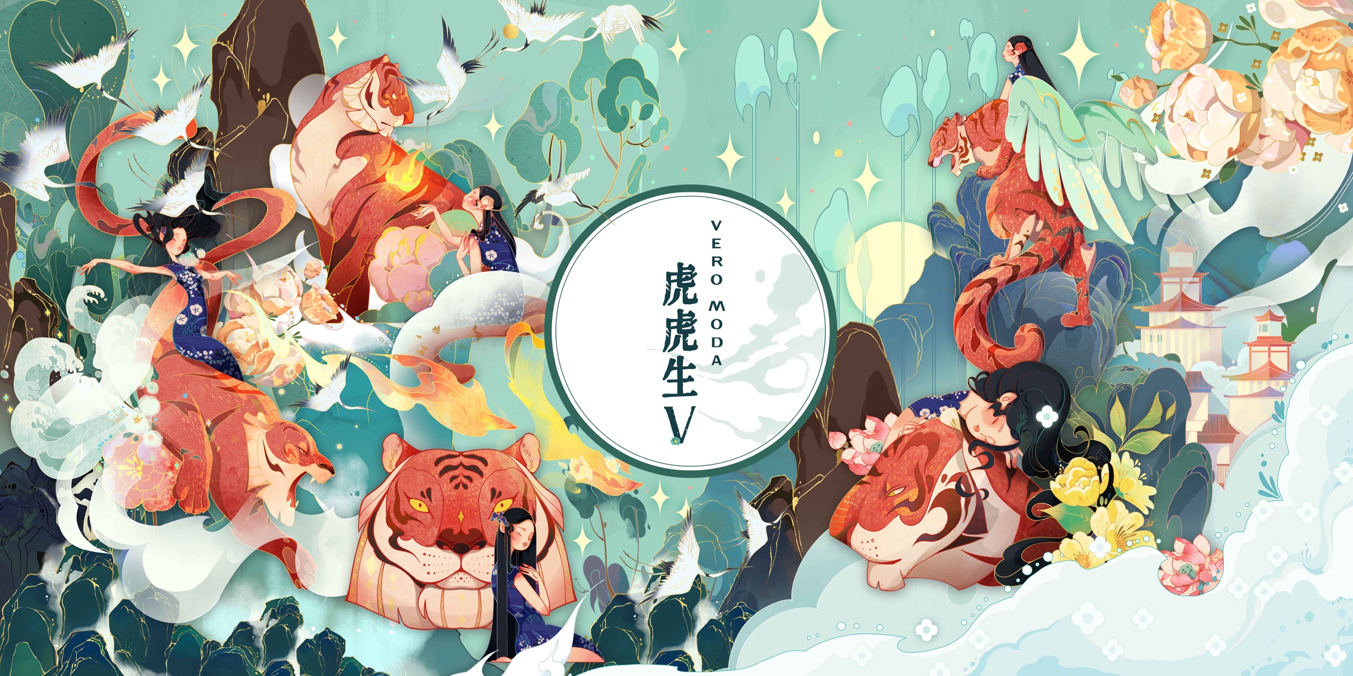 虎年来临之际,站酷特邀人气国风插画师野生胖鸟,为VERO MODA创作虎年主题插画。