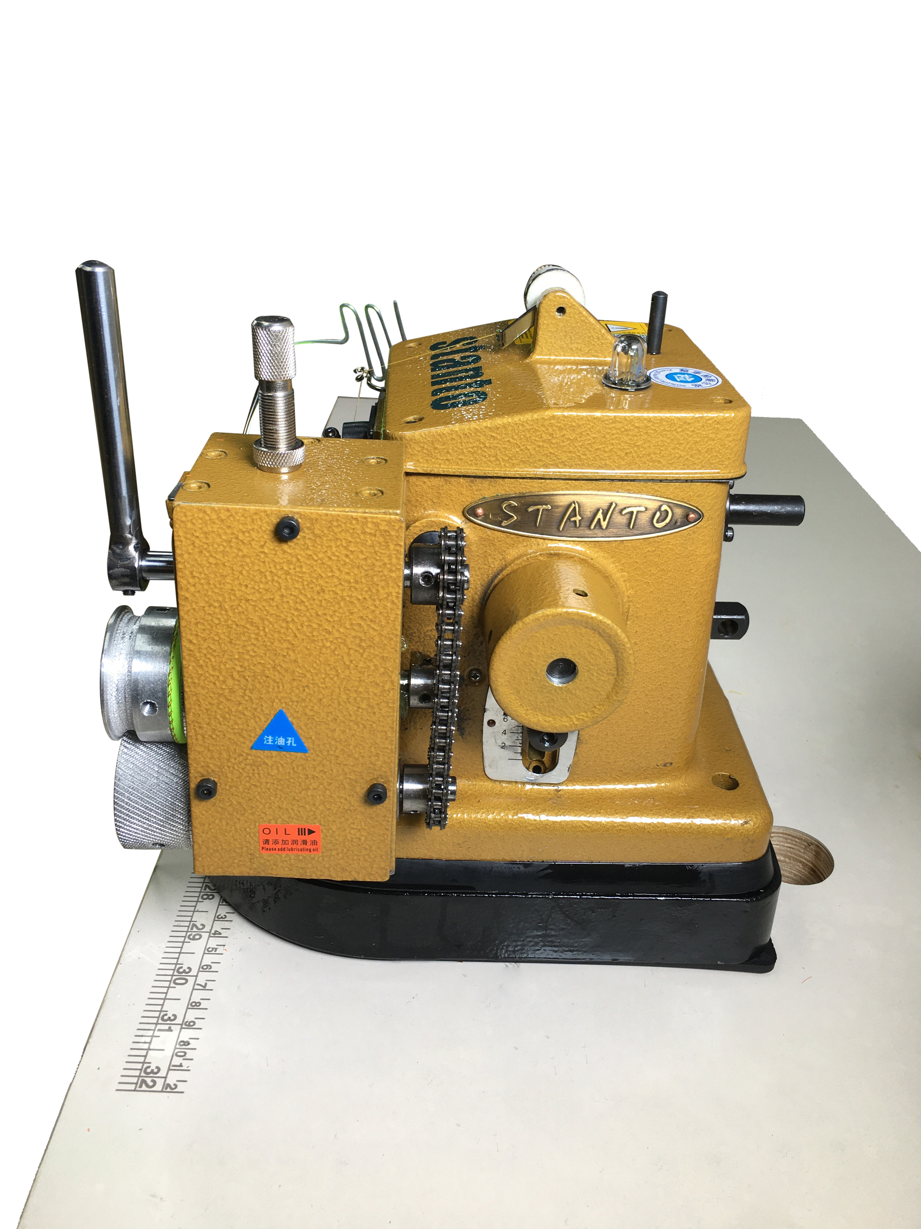 答:机器的操作简单,不需要底线,用拖布轮牵引送料,可以实现连续缝制。一个人可以同时操作多台机器。在使用过程中一定要注意机器油窗喷油,持续的保持润滑。