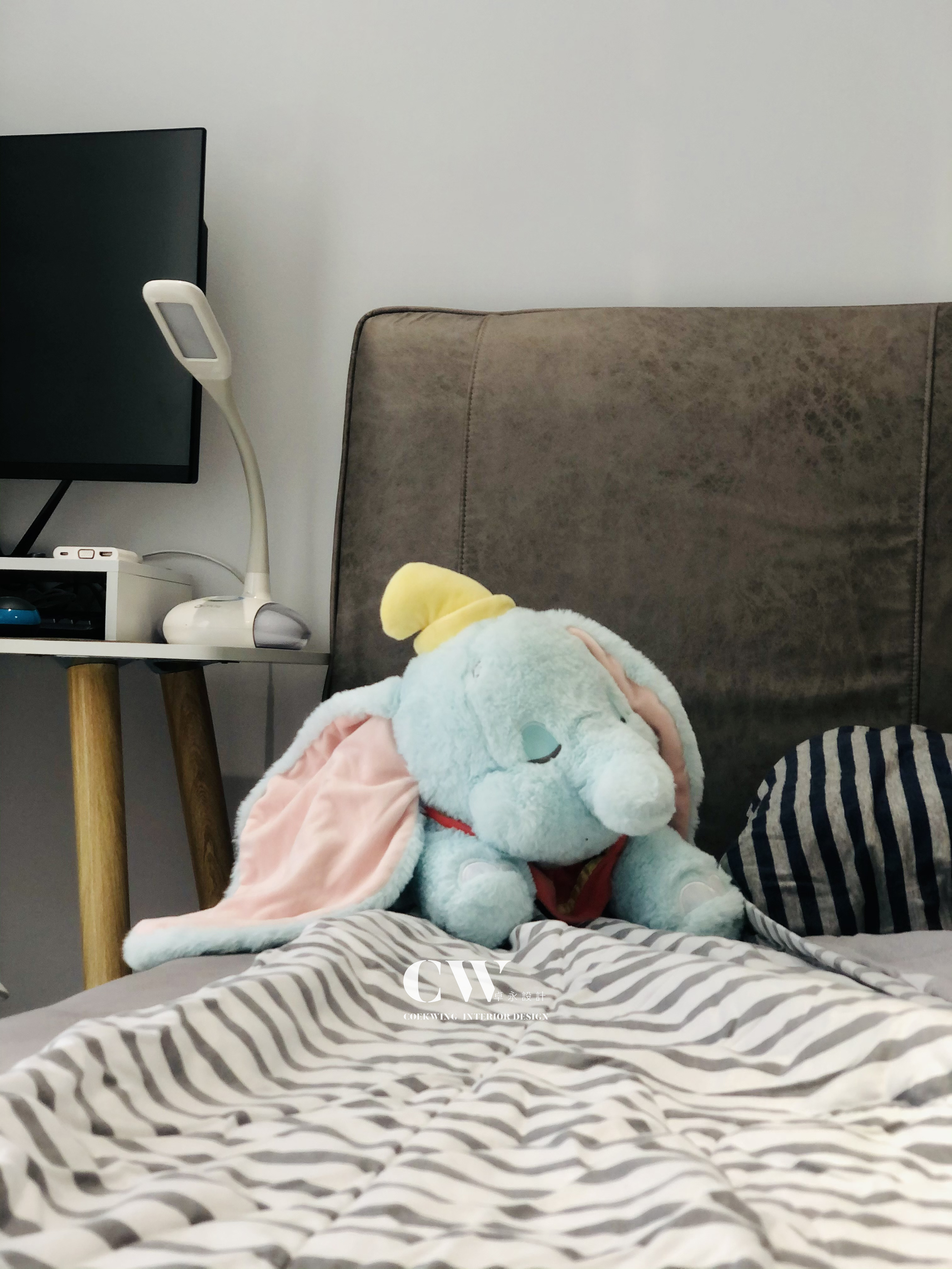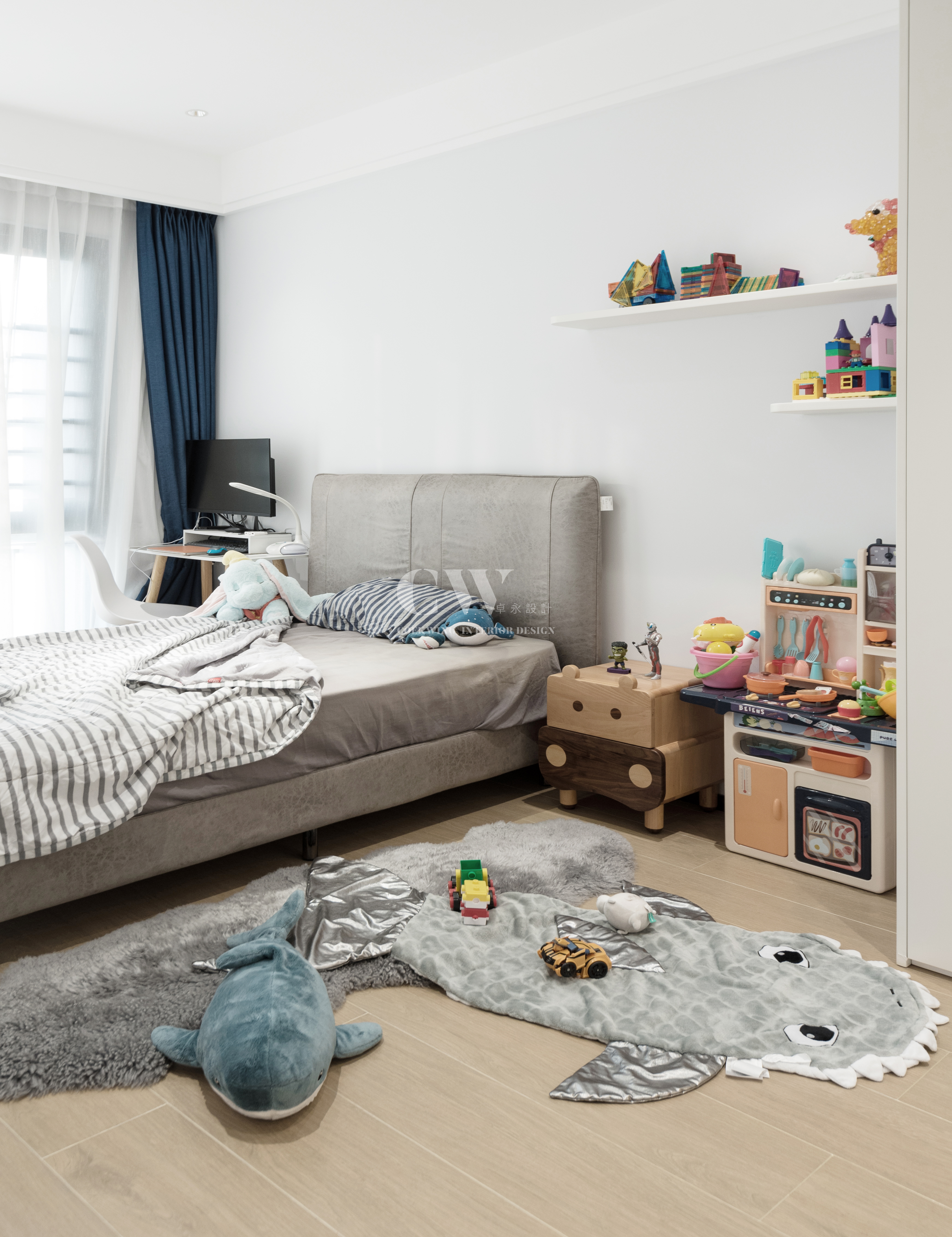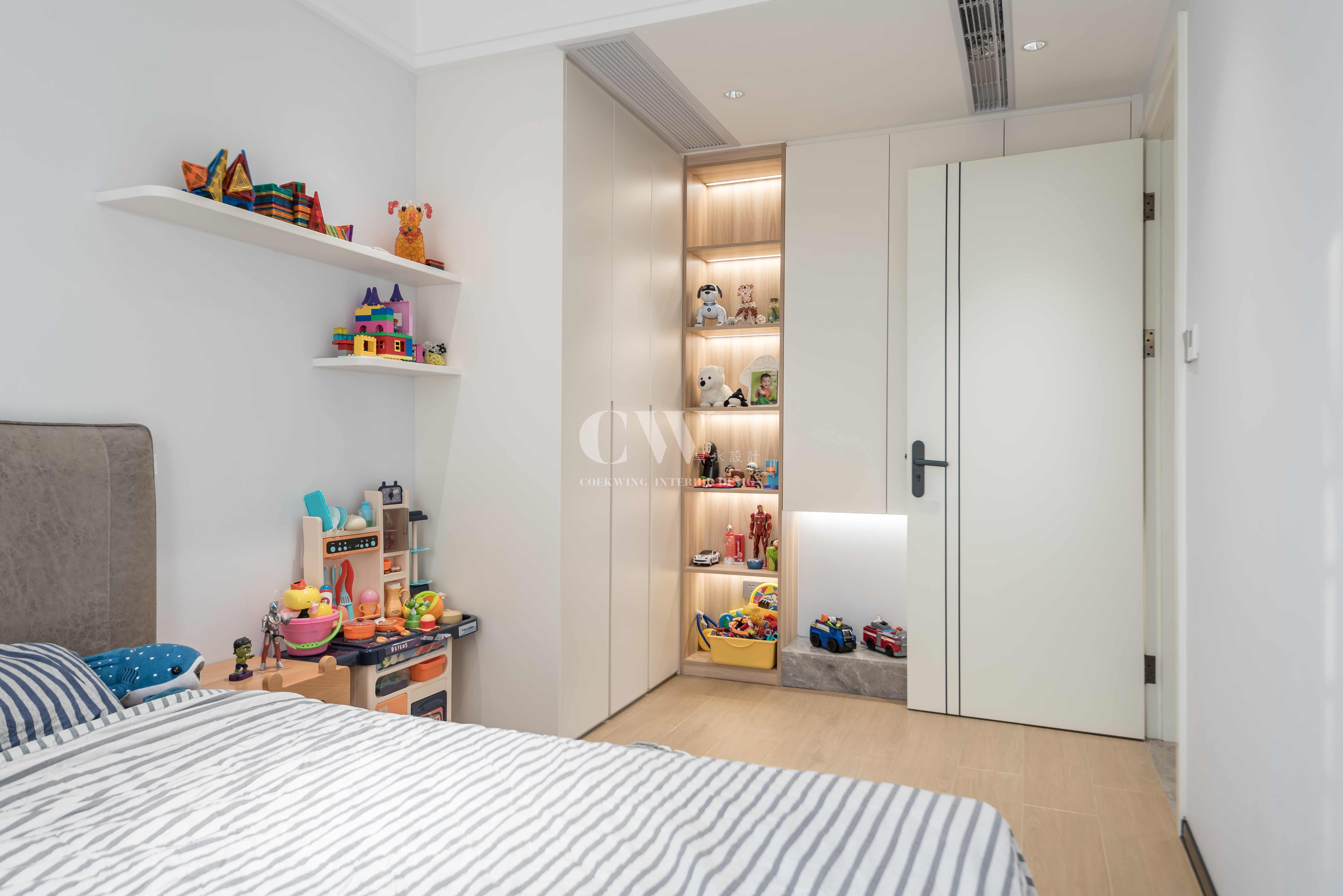 是玩具展示櫃、是手辦臺、是書架、是收納櫃、是衣櫥,百變的儲物空間,是靈活的規劃,極簡的色塊組合,木,石的運用是和諧的空間美學。