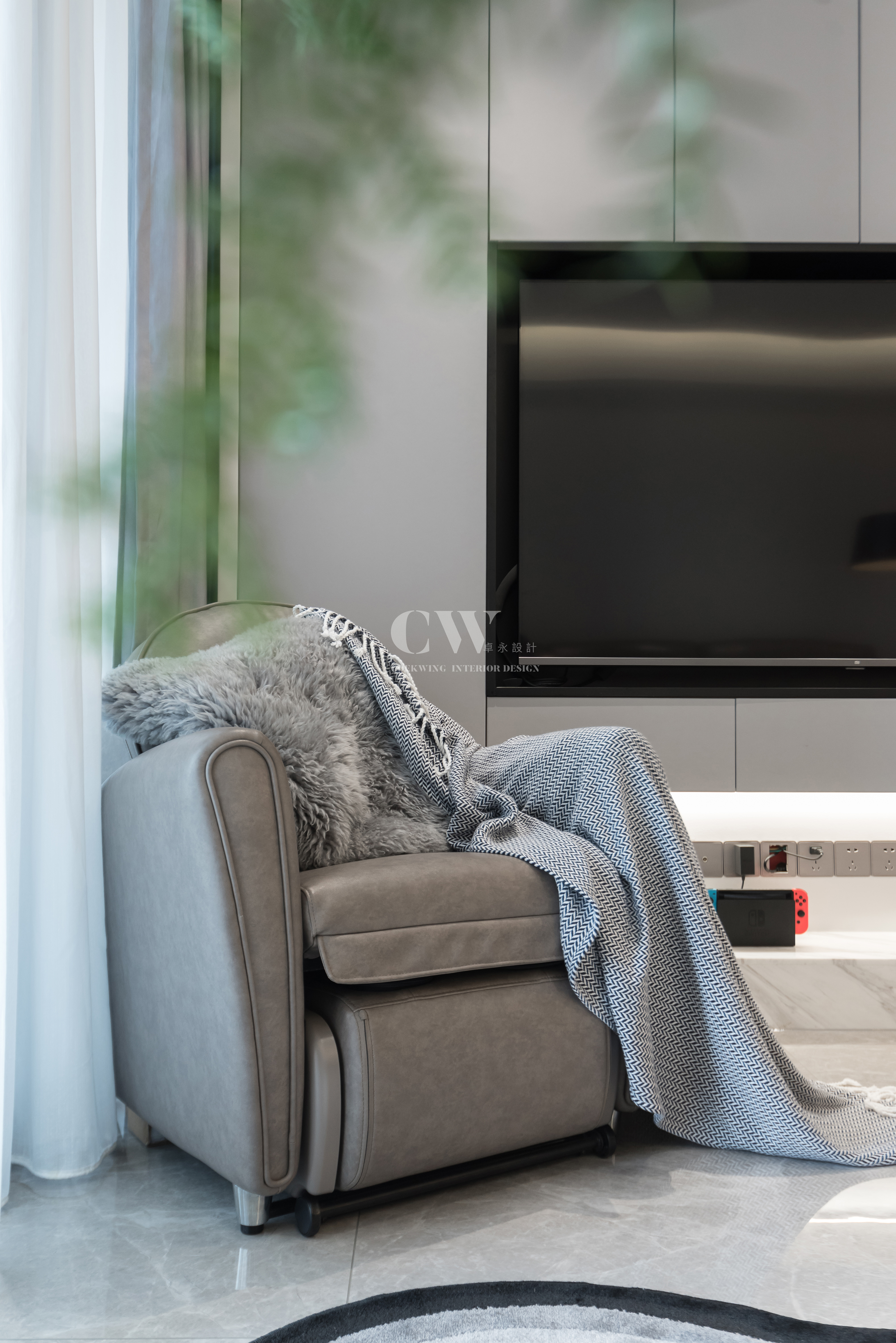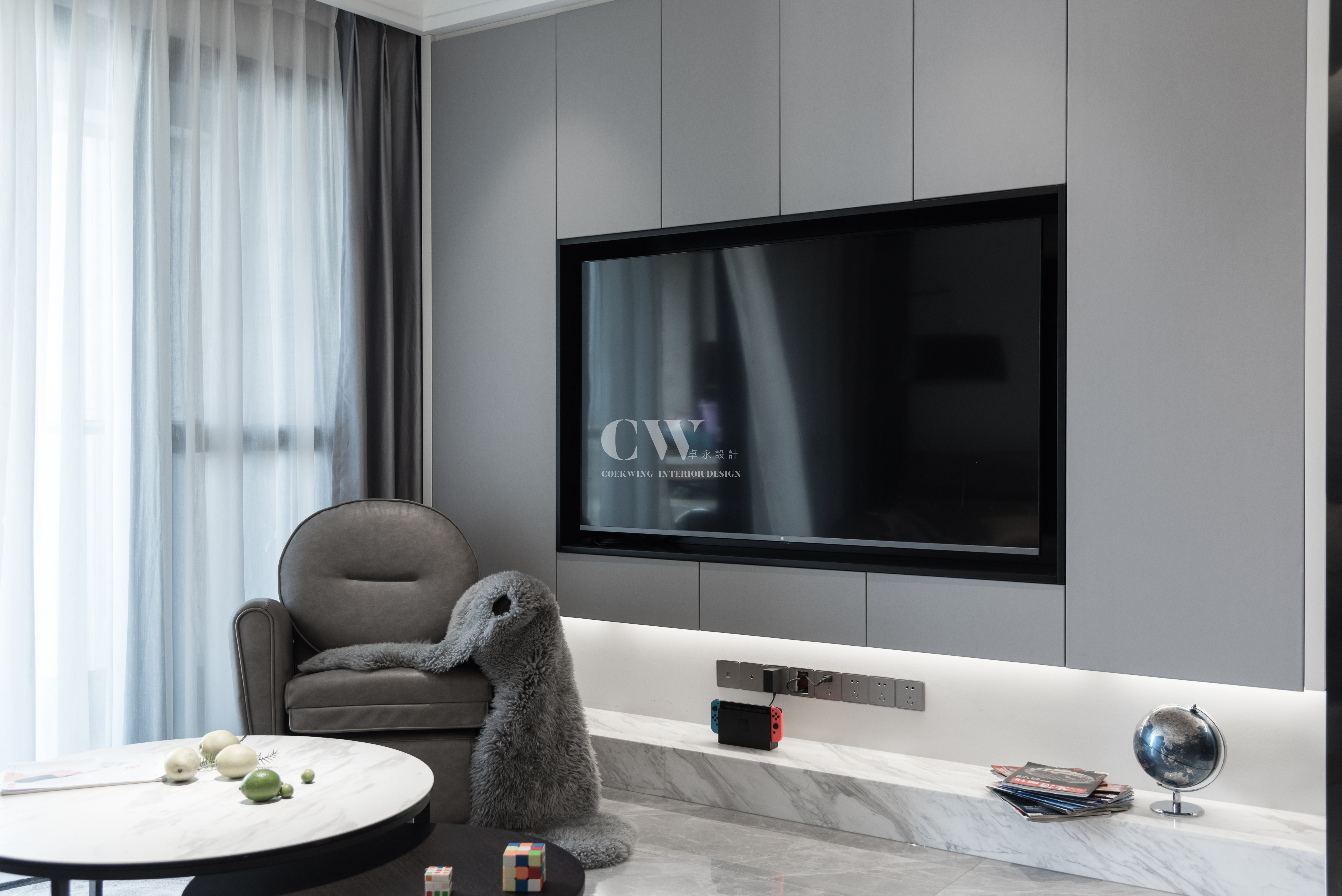 素雅的高級灰與留白的配色結合處理,透露出一份永不過時的靈動美感。木飾面的搭配是對空間色系均衡的調節,靜而不冷,是靜謐的療愈身心,是經久耐看的舒心空間。