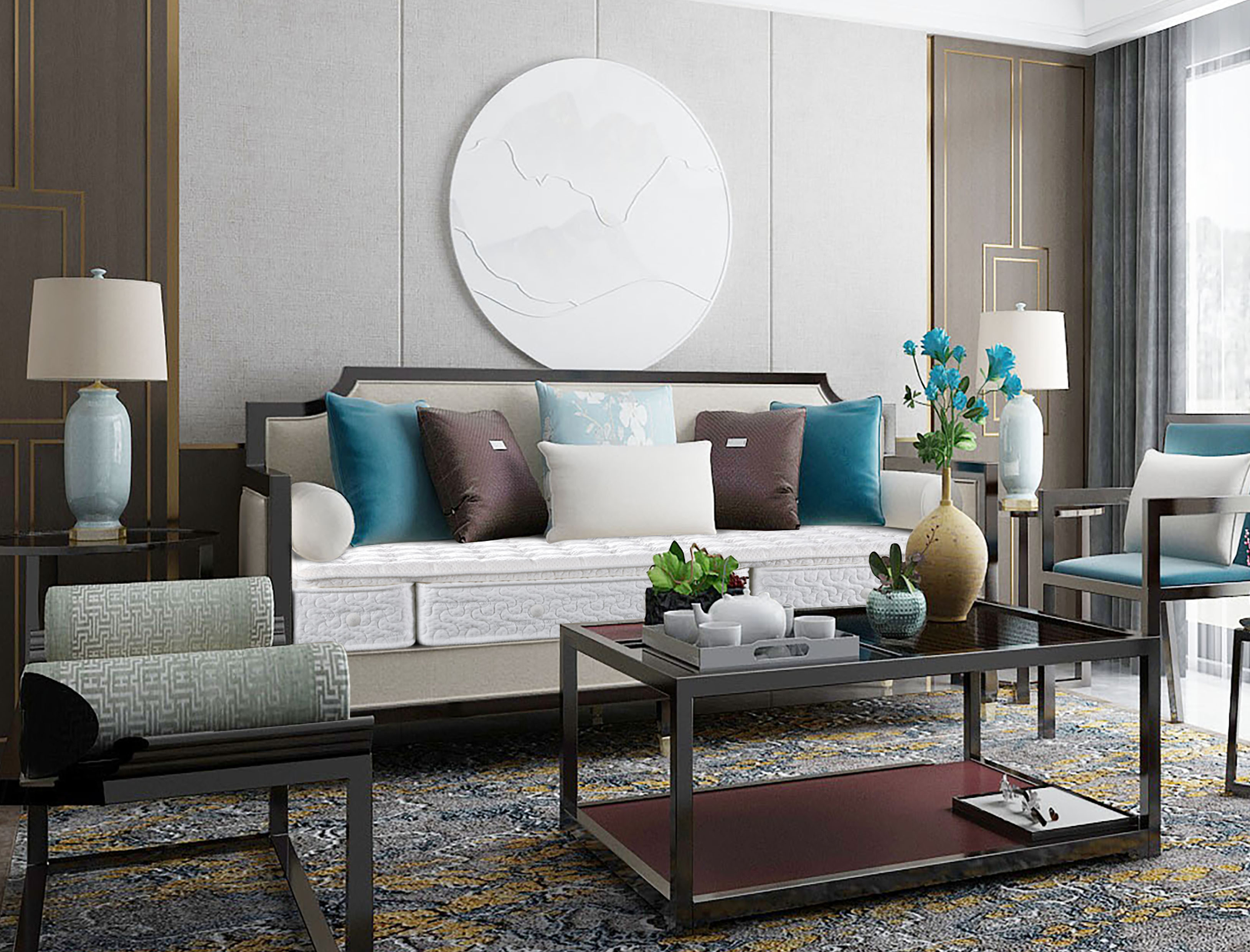 沙发床需要满足坐、卧两种需求。康姿百德沙发床垫内置强力高回弹聚氨基甲酸乙酯层,坐感舒适、回弹性好,配以蓬松柔软的靠垫,贴合人体曲线,承托起身体的每一处重量,丝毫不逊色床垫,或躺或坐,都能感受到舒适,这才配叫沙发床。