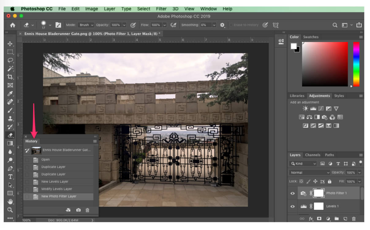 Photoshop 中的历史记录会将用户使用过的每个工具、动作、过滤器或其他命令都记录在按时间顺序排列的列表中,不仅能撤销历史操作,还能让用户有选择的打开或关闭动作,或者重新排列其顺序。