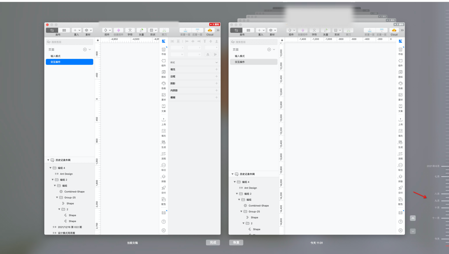 Sketch中的历史记录是根据时间线来查看当前文件的所有历史版本的,可以对时间点进行切换,从而恢复到一个用户想要的版本上。
