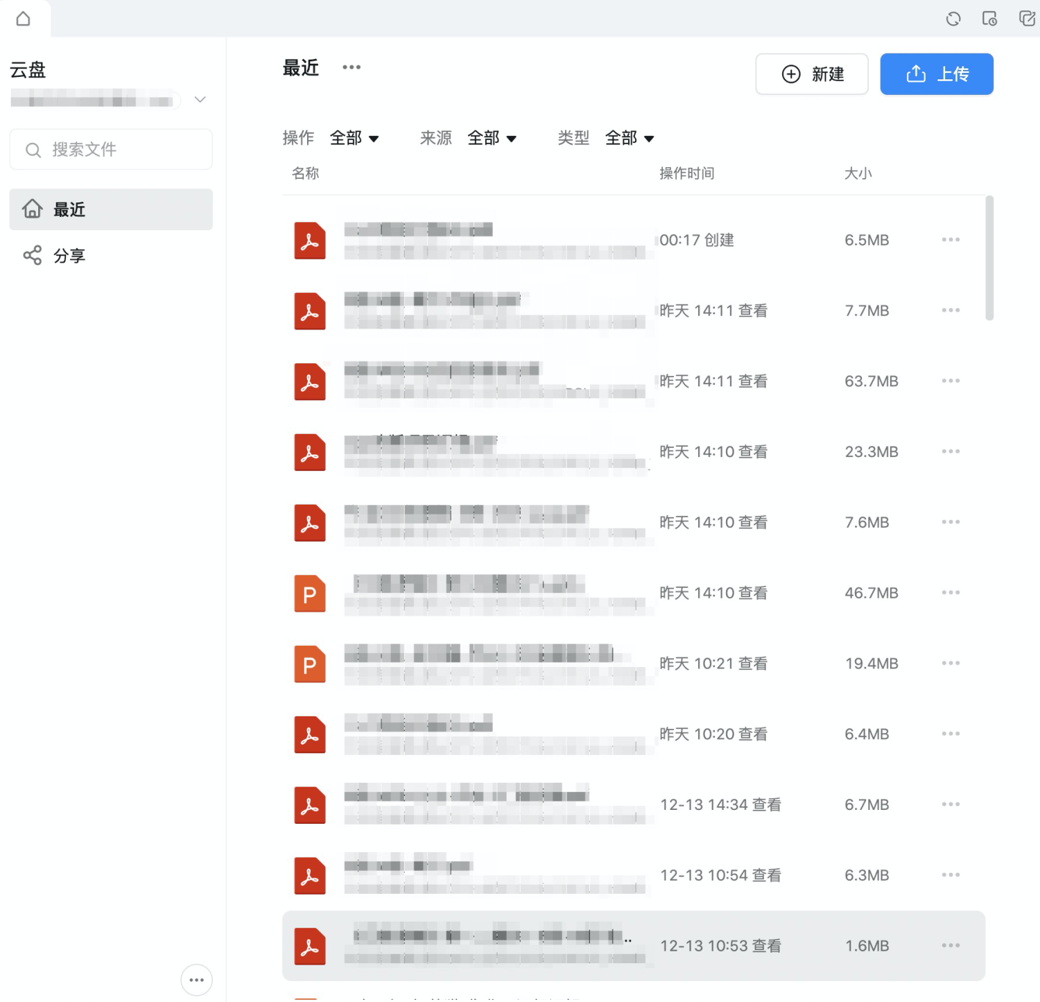 例子: 钉钉的云盘查看文件后留下的最近查看文件的历史记录。