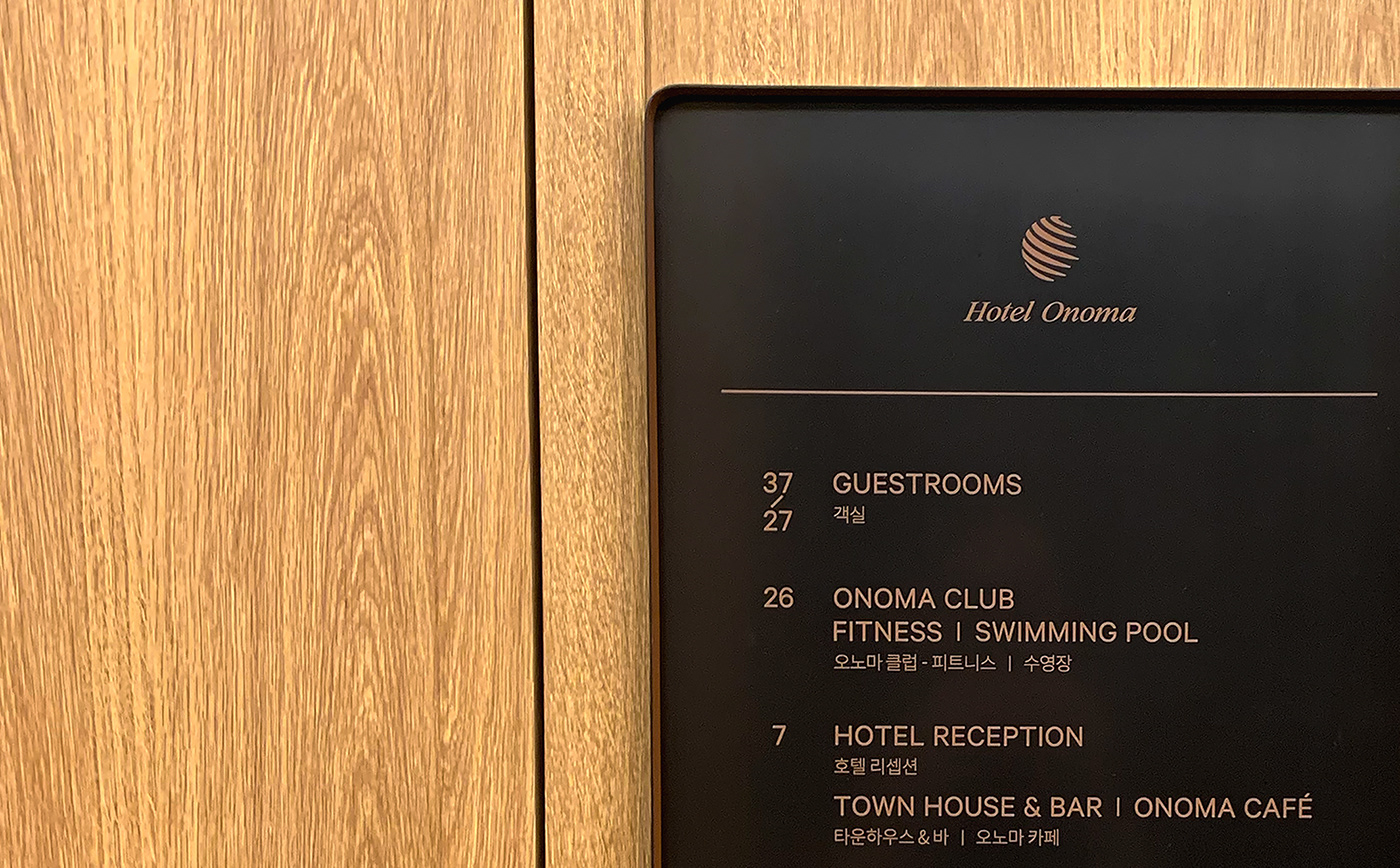 Onoma酒店位于韩国大田儒城区,提供客房、餐厅、停车场、健身中心、酒吧、会议室和泳池等设施,Aretes工作室受邀为其进行导视系统设计。