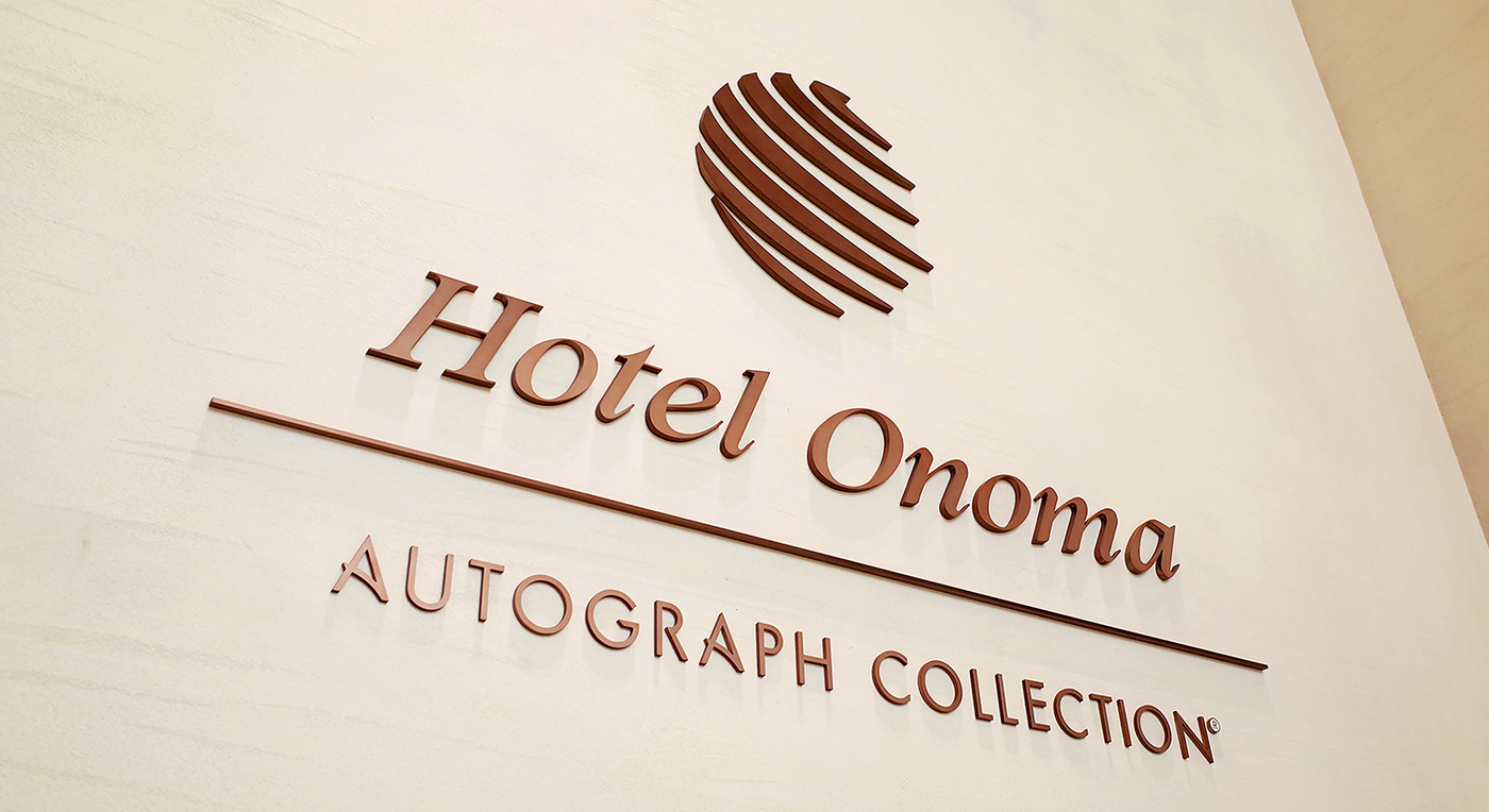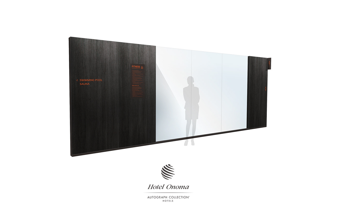 基于Onoma酒店的内饰,Aretes工作室采用白色、棕色和黑色的配色,与内饰相融合。Logo使用经典的衬线字体,通用信息则使用精简的无衬线字体,使信息易于传达,整套导视系统营造了优雅的酒店环境。