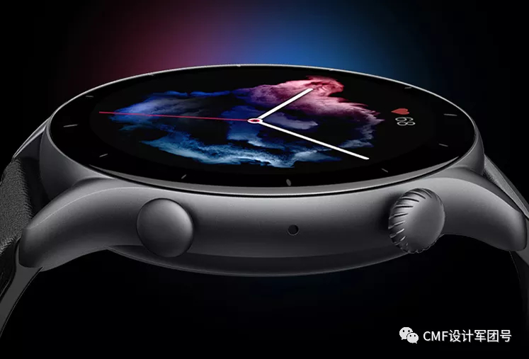 相比TWS耳机、智能眼镜、VR头盔等智能穿戴产品,CMF设计的玩法在智能手表上可发挥的空间更广,自由度更高,更多的是体现在智能手表的表壳(包括前后盖)、表圈、表框、表冠、表带、屏幕等。覆盖材料、工艺、设计、造型、色彩、纹理、图案等多重设计元素。由于手表是穿戴在手腕上的产品,外观装饰性更多体现在表圈、表冠及表带等位置。