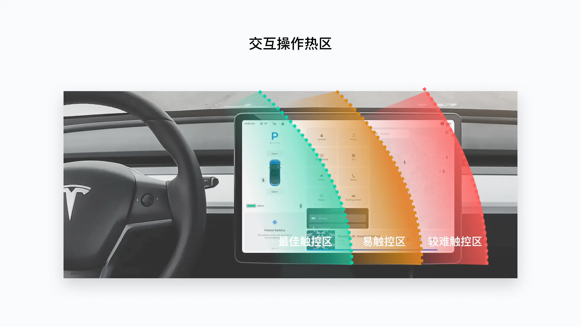 同时,点击仍是最有效的交互,滑动与长按在上述的3秒安全操作时间内,都会极大的增加操作难度和驾驶风险。