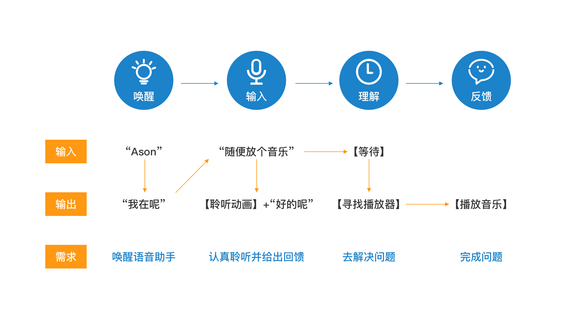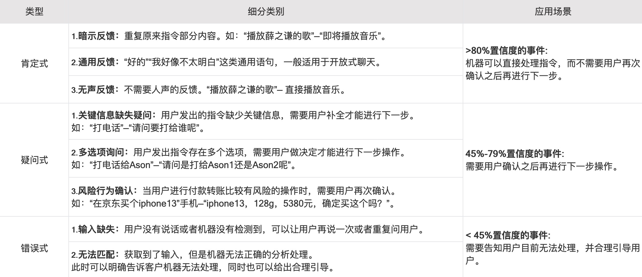 (4)反馈:语音交互最重要的环节,除了让用户得到想要的反馈之外,还应该让客户轻松自然有效的接收到反馈信息。