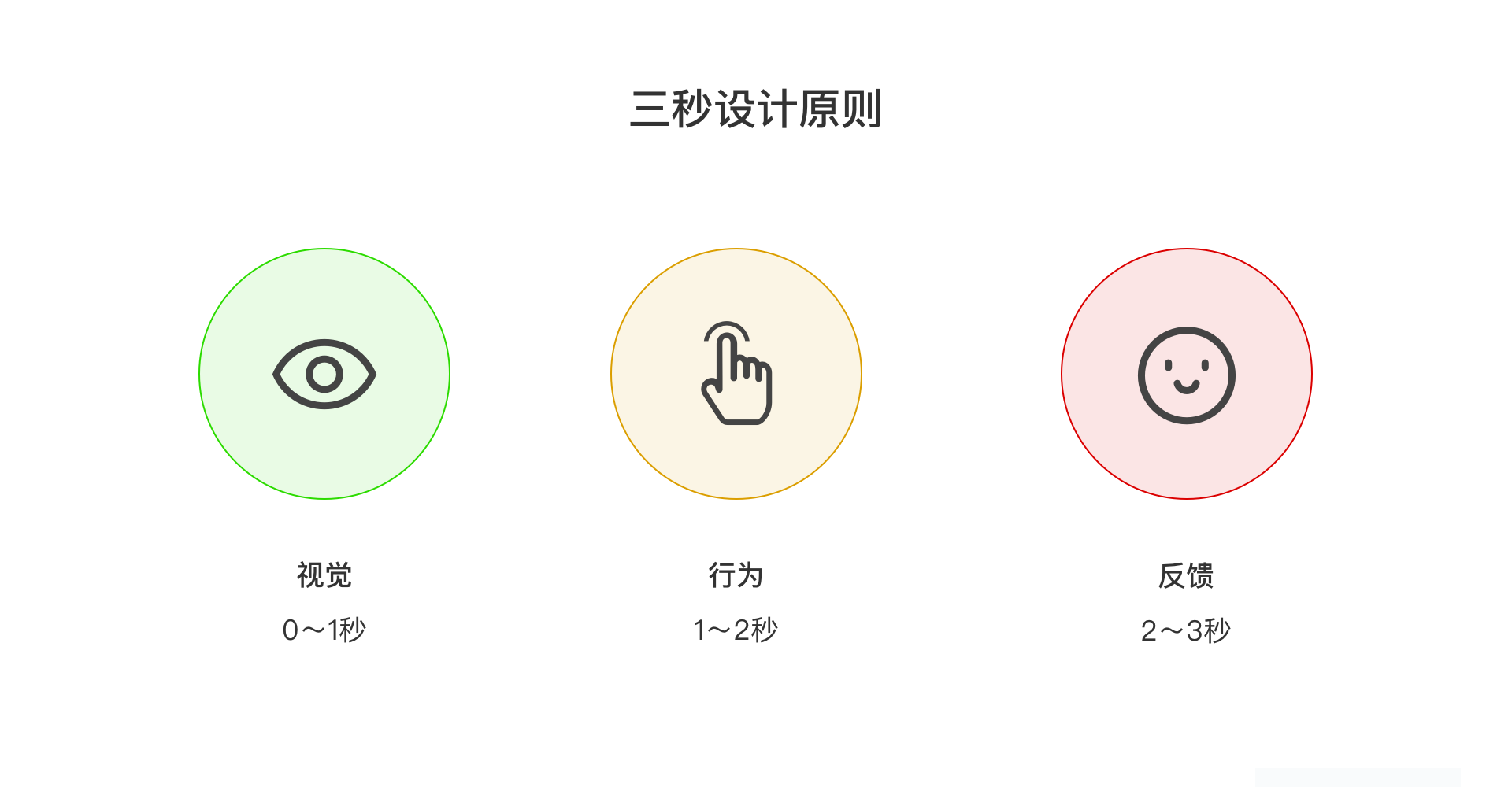 在交互行为过后,在第三秒必须要有强烈明显的反馈告知用户操作成功。例如明确的点击效果反馈,可通过声音或者界面动画,但过于滞后(超过3秒)的动画反馈将脱离用户的有效感知时间,将不能很好的提现反馈本身的价值。