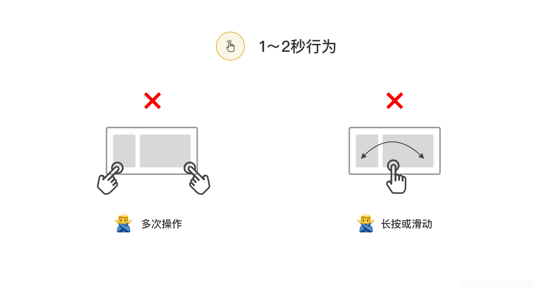 用户在交互行为过程中从开始至结束时间上不能超过一秒。