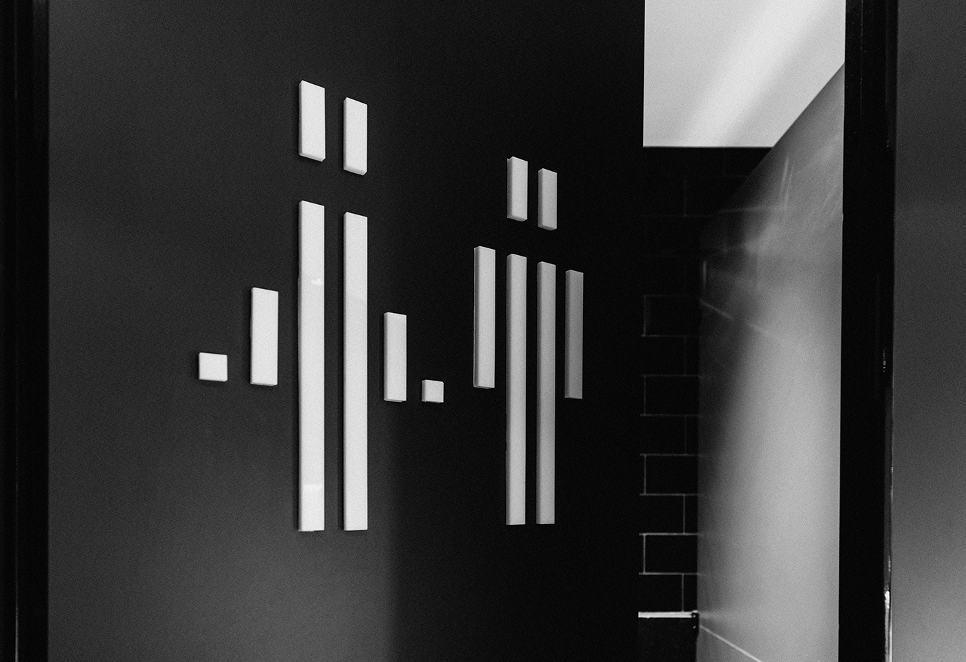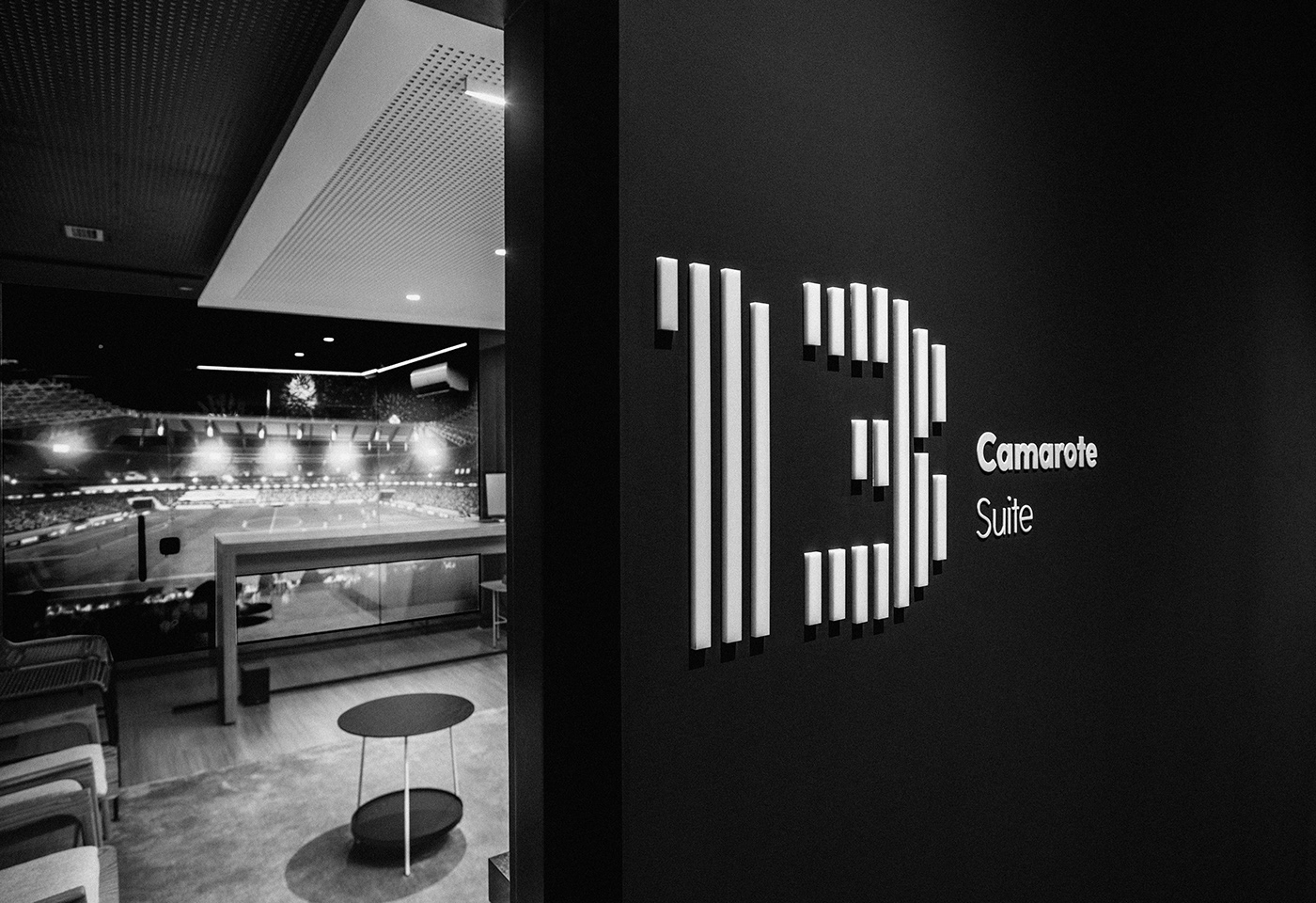 基于MRV竞技场足球俱乐部的代表色是黑白,因此将黑白条纹元素提取出来设计了icon和编码数字,营造了环境的品牌感,使其更具凝聚力,整套导视系统与当地球队历史相呼应。