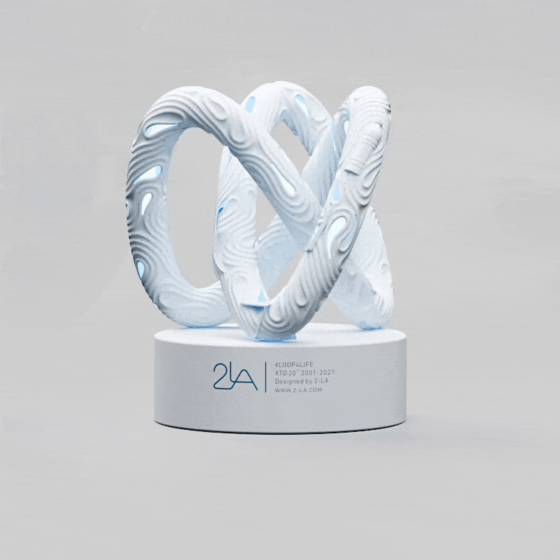 “初新”是2-LA Design团队用最先进的算法设计与3D打印工艺表现最基础的生活化元素,通过将基本元素“纤维”放大,增强观众对可持续理念的视觉印象,建立起可持续与生活之间的联系。(2021年设计上海参展作品)