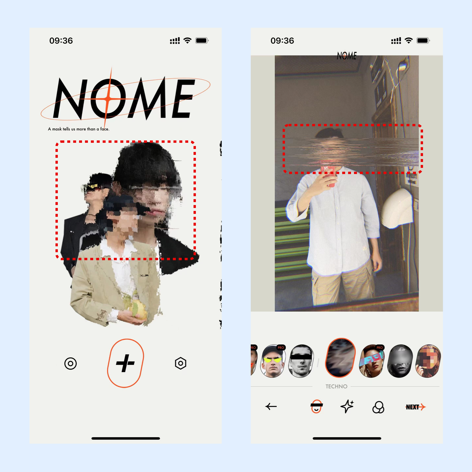 打开NOME之后,直接上传照片,上传后会自动解析照片的脸部区域,锁定后直接打马赛克。