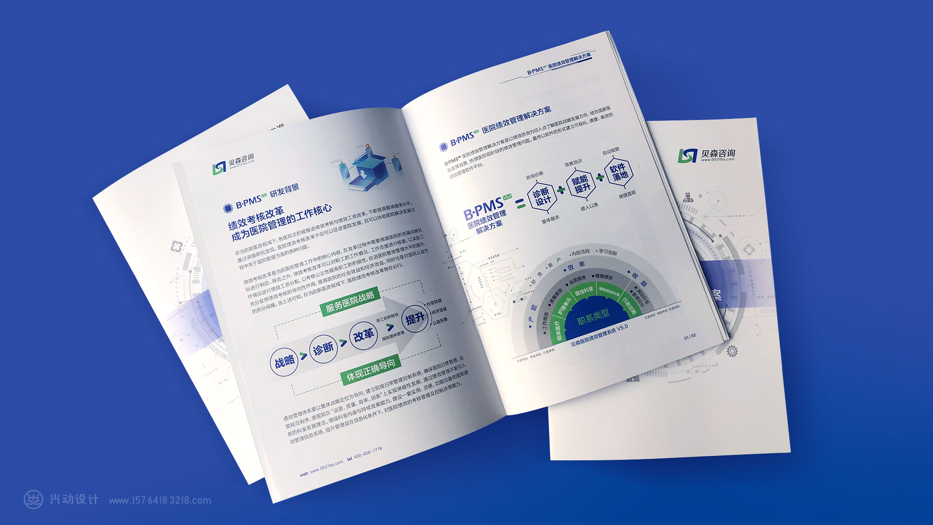 咨询公司画册设计,济南画册设计公司-兴动设计作品:贝森咨询B·PMS医院绩效管理解决方案画册设计。