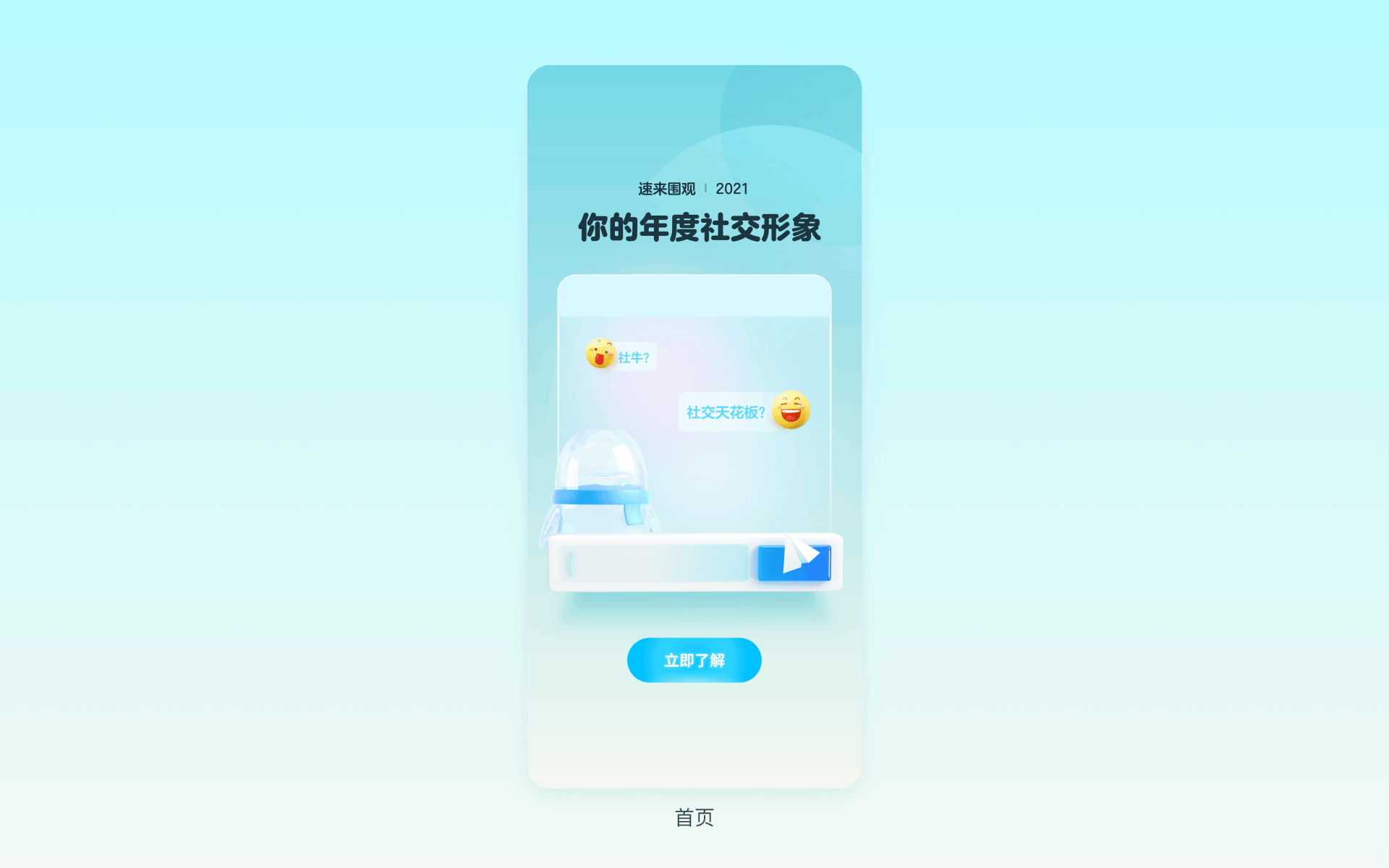在回忆2021年的社交信息前,首页通过QQ聊天对话的形式制造社交形象悬念,并通过发送消息的动画形式将大家引入活动内容。