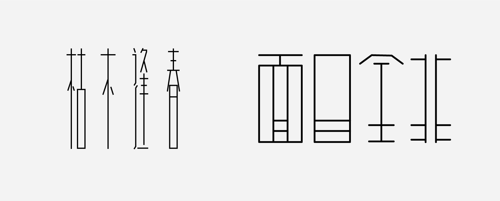 岳昕老师曾提出观点:“笔画是用来均分空白的。最有效、最直接的方法是将汉字字体设计看作是规划方格内部的空间关系,用笔画均匀分割方格空间,建立稳定、有趣的汉字间架结构。如果没有清晰均衡的间架结构,笔画便没有妥帖的秩序与关系,字体势必面目全非”。