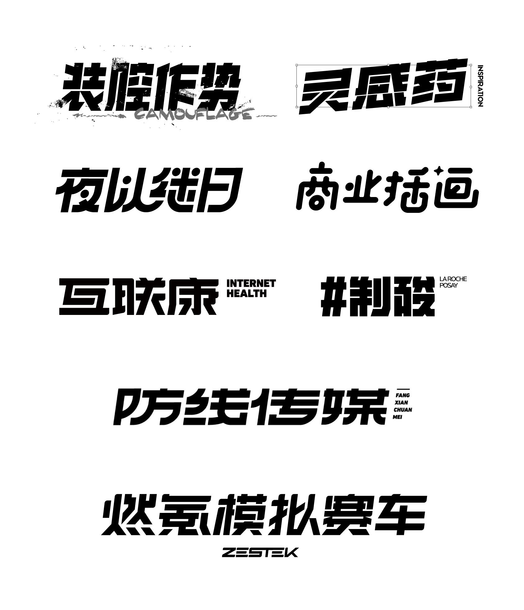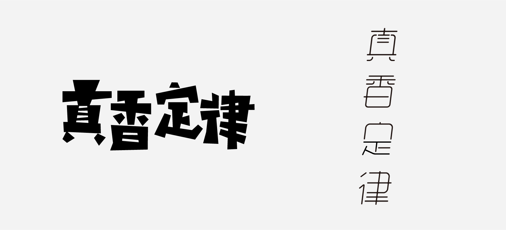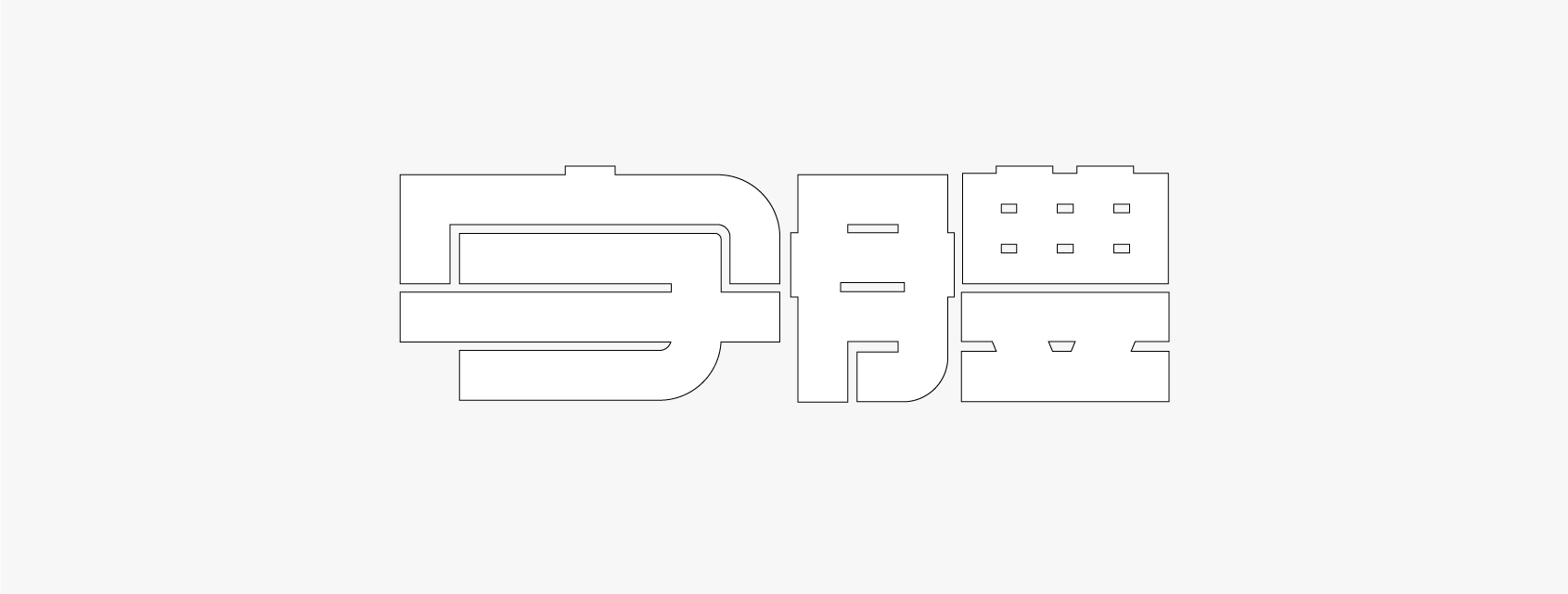 同样是设计大字重且保证笔画粗细统一的前提下,可以直接从改变布白空间展开设计。可以利用一些特殊的布白调整手段:删减笔画、共用笔画、断开笔画。通过这些手段让布白更合理。不用过多做笔画粗细上的变化。