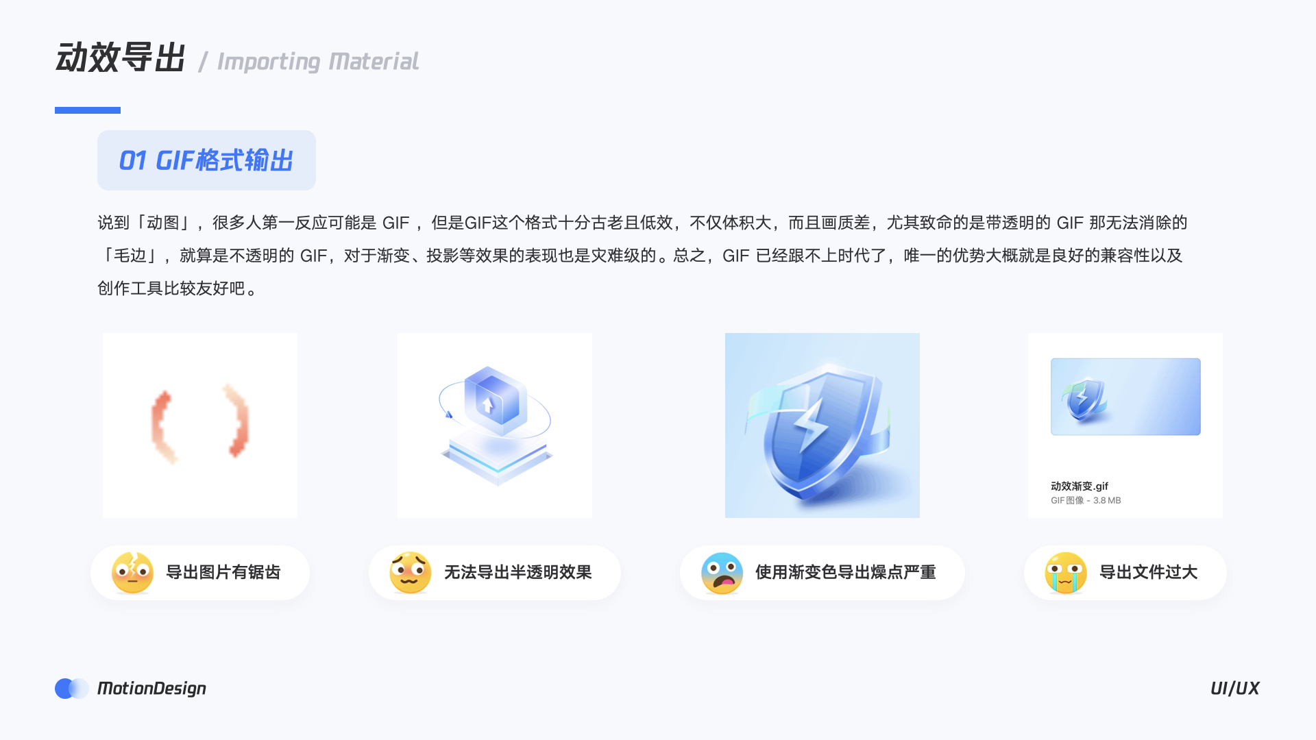 设计工作中避免不了制作各类型的动效、与开发协作。熟悉动图的制作方式与文件输出,会极大的减少与开发人员的沟通成本,并且在一定程度上能够提升设计师的话语权与决策权,提高效率的同时能够更大程度实现视觉效果。