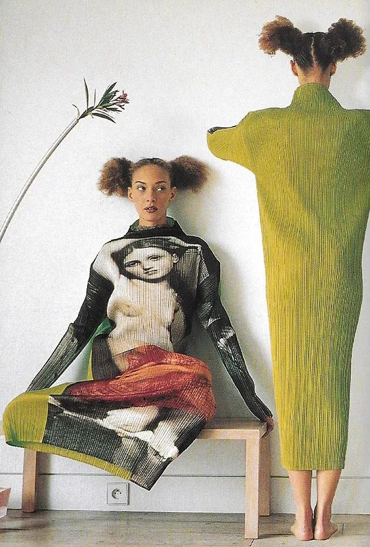 谁也没想到皆川魔鬼子与三宅一生相遇不到一年就做出如此惊艳的系列作品,来自京都的一个传统面料工艺世家、从纺织专业毕业的皆川,与喜欢从传统面料入手,挑战高难度新事物的三宅一生一拍即合,成为携手走过半生的挚友与工作伙伴。