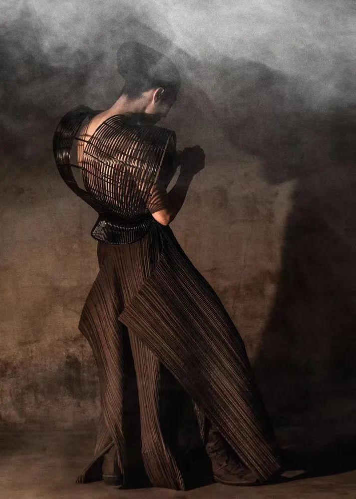 三宅一生曾说过:“我总是闭上眼,等面料告诉我应该做什么。”这位“面料魔术师”用他的一生诠释着人的舒展,自由地让人的身体去诠释服装,有着浓厚的哲学含义。