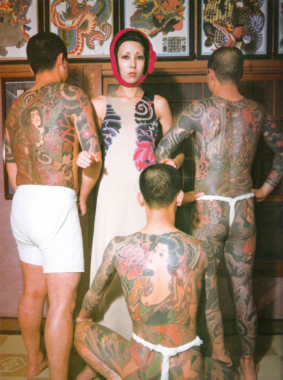 1971年,三宅一生在纽约和东京同时发布了首个服饰系列《纹身》(Tattoo),大获成功。这个系列也是他与布料设计师皆川魔鬼子合作的第一个系列。最让人津津乐道的棕色连衣裙,是用日本传统技法把1970年去世的两位年轻美国摇滚乐手Jimi Hendrix和Janis Joplin印在背部,传统工艺与反叛图案的结合具有强烈视觉冲击。