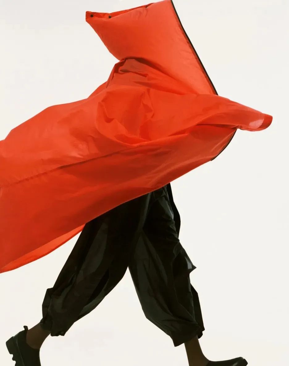 这种制法是先剪裁出比正常尺寸大的衣料,然后用机器打褶、加热固定,让原本二维的面料立体起来,沿袭了日本传统中面料与肌肤间“留白”的传统。这不仅增加了结构性美感,张弛灵活,而且还开拓出一个新思路:面料也可以定义一件衣服的形态和功能。