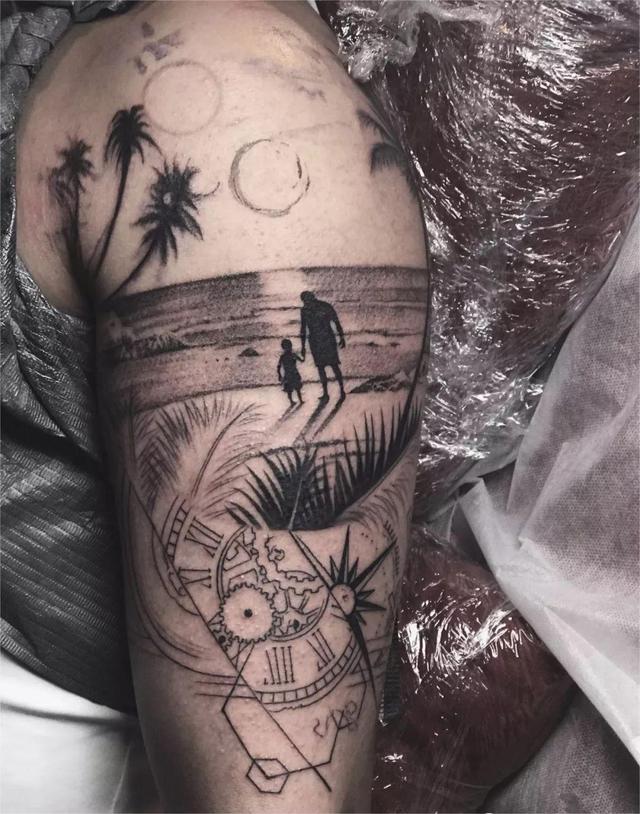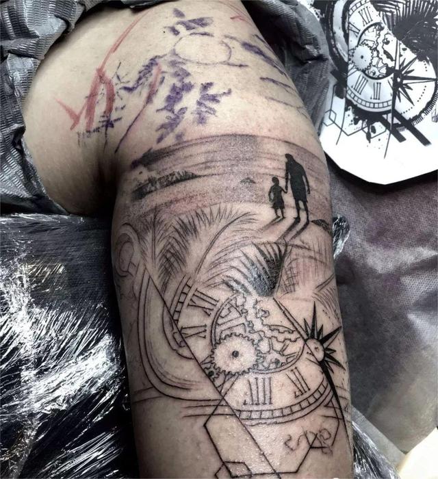 同样是浓于血刻于骨,父母恩情基于教养,责任,而祖孙情就只是纯粹的宠爱,贯穿我们的童年,那时候的我们任性,淘气,等不到现在的我们成熟,担当,也还是那么无私,这值得我们用一生铭记,刺青是最合适的方式,绘画到了人体上情感故事刻下印记。