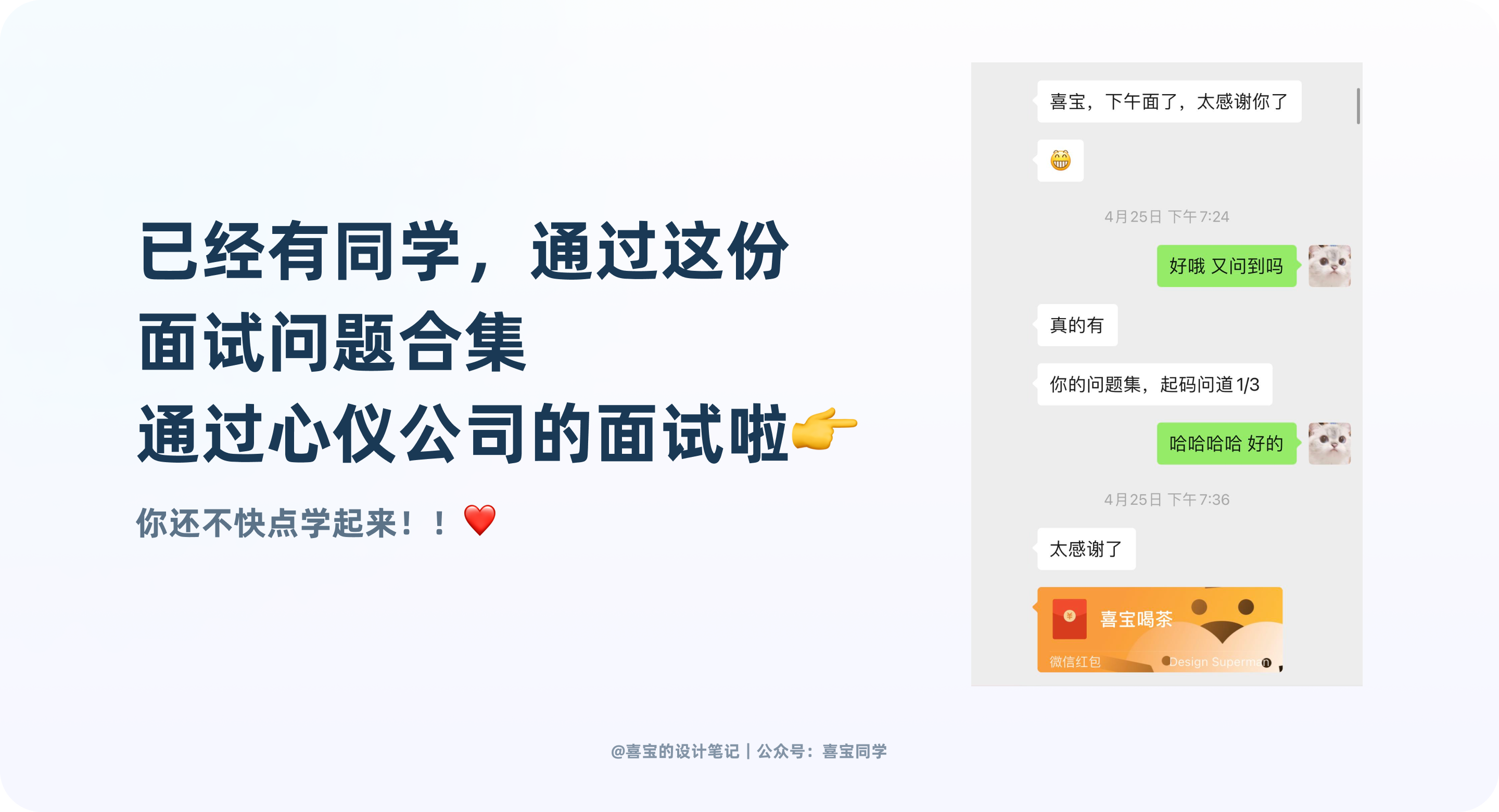 许多大厂设计师毕业后,也面临很难找到工作的情况,是因为他们的能力不行?作品集不好吗?其实不是,往往是他们忽略了面试的这个重要环节。我也参与了这波裁员潮下面试,成功拿到了四五家一线大厂/准一线大厂的Offer,同时也拿到了预期的涨薪💰。可能并不是因为我的能力比他们强多少,而是因为我在面试准备和总结上投入了更多的时间和精力。