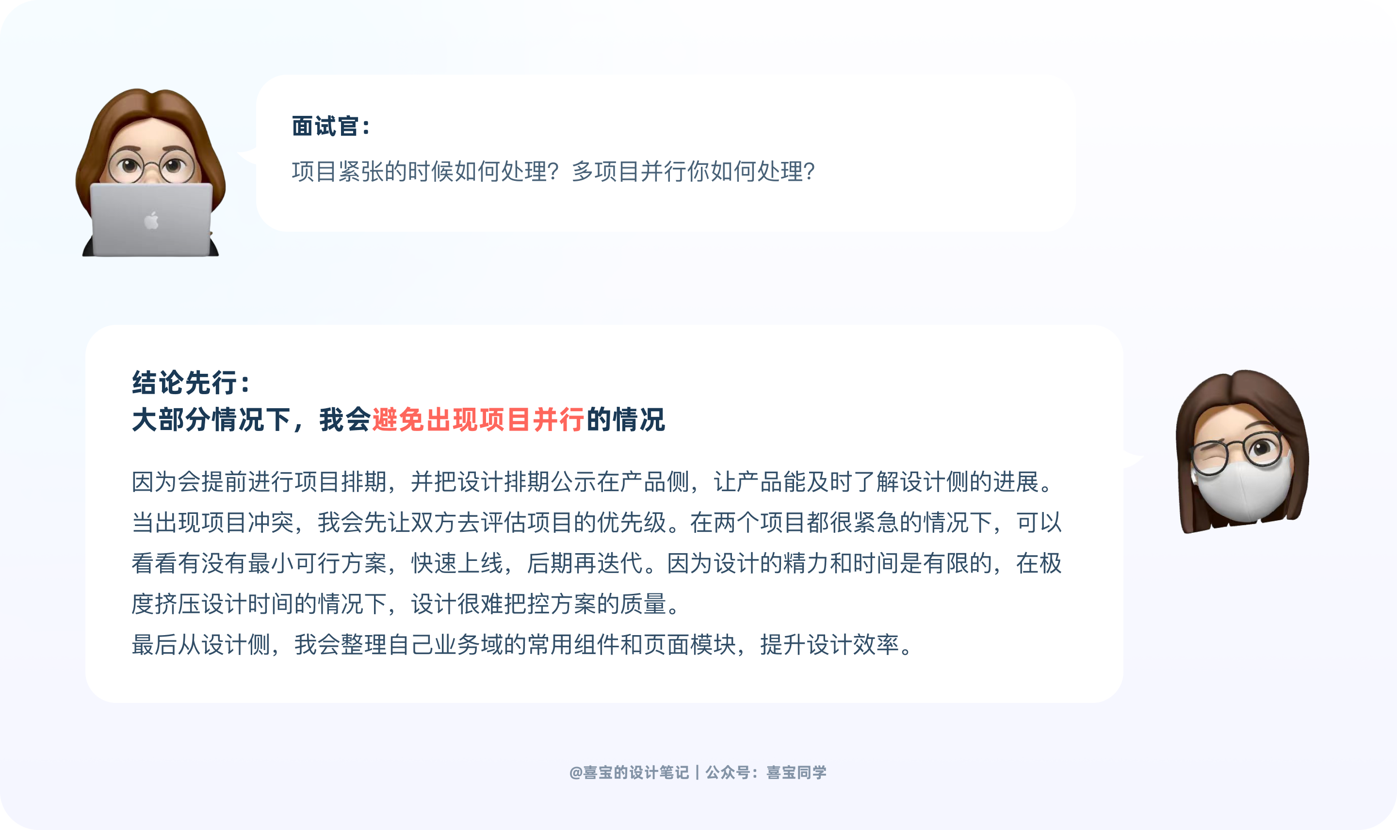 1.怎么进行项目排期2.学会拒绝,在合适的范围内接,在质量把控的范围下接3.从效率提升的角度,设计如何避免这种问题