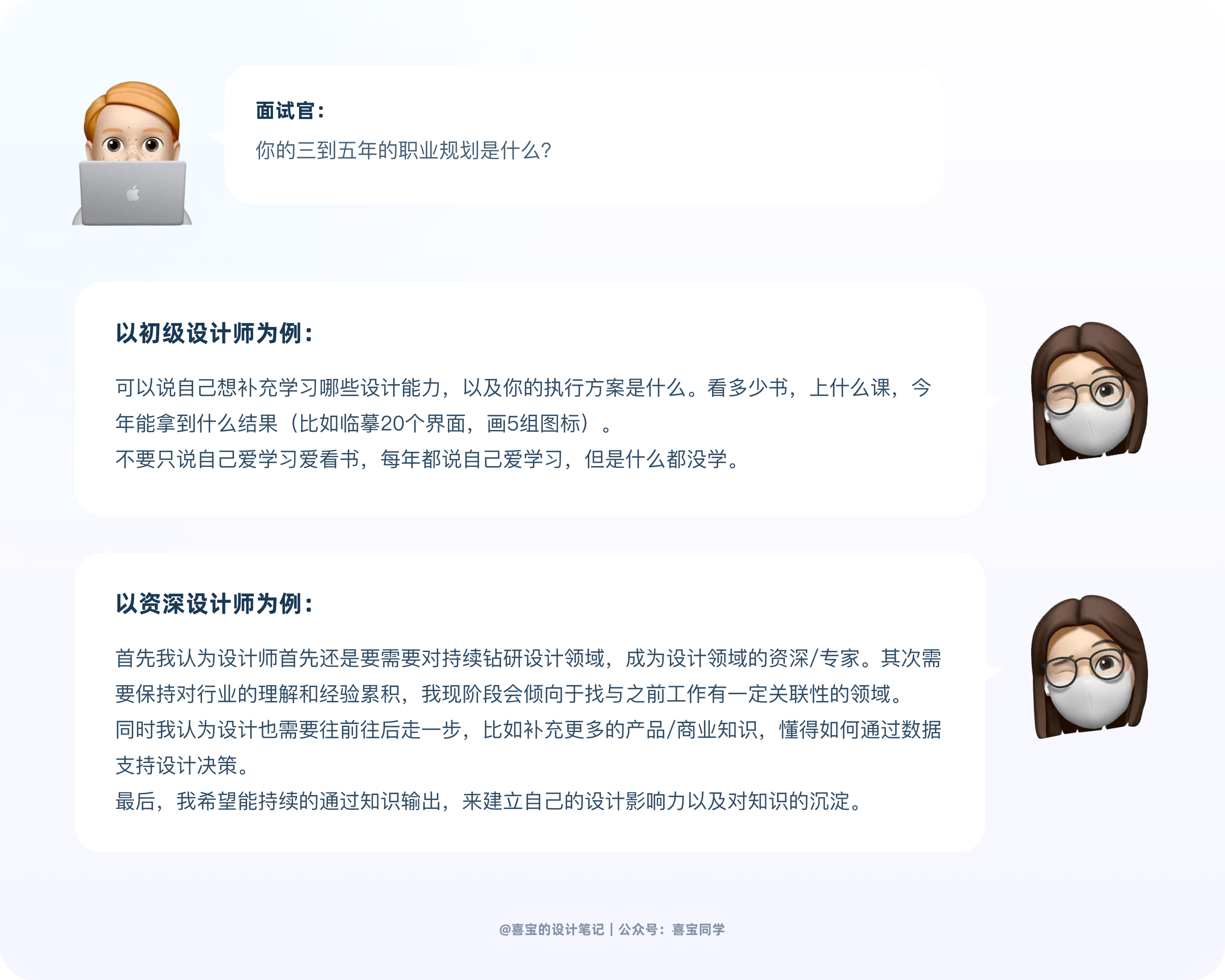 1.突出自己的稳定性,表达自己对设计的热爱,并准备长久钻研下去2.明确表达自己进入想要什么,并暗示自己是成长性的设计师(现在的我优秀,以后的我会更优秀)。