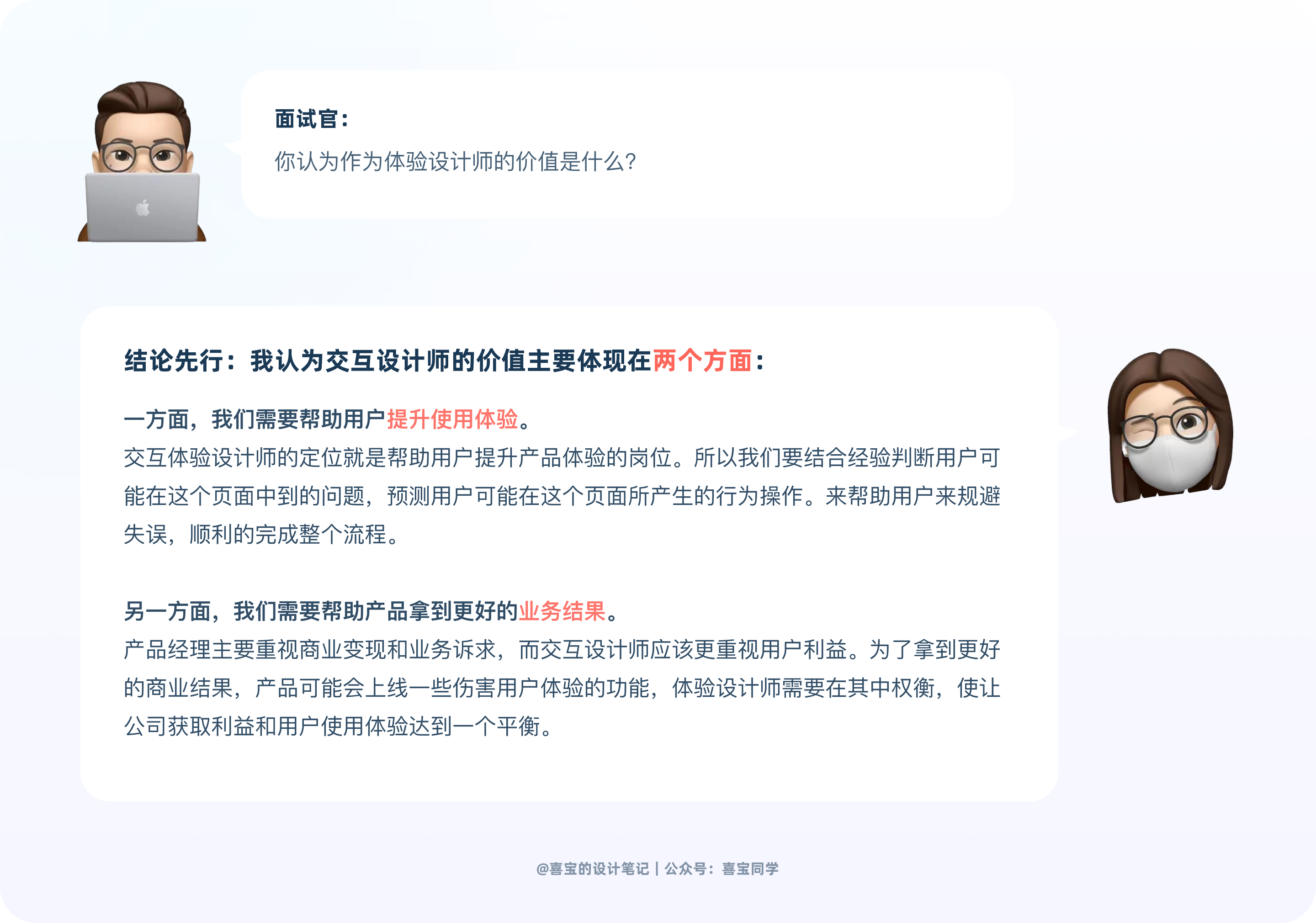 重点是,在专业面中我们需要说清楚在之前的工作经历里,当你面临一个问题时是如何思考,如何解决的,并且最后拿到了什么结果(划重点!!很多时候设计师,都在专注于解决问题,或者是输出设计稿,而忽略了业务结果)
