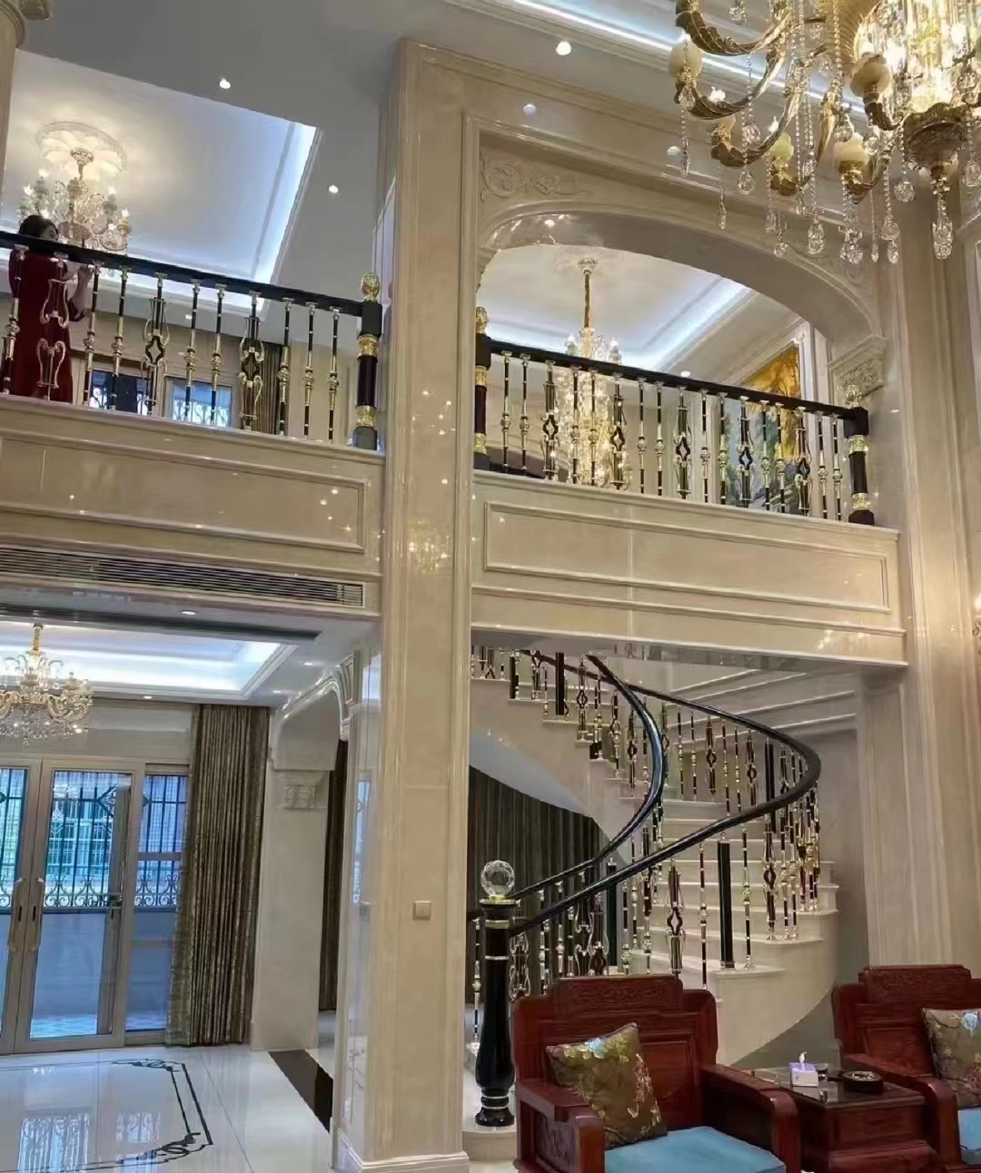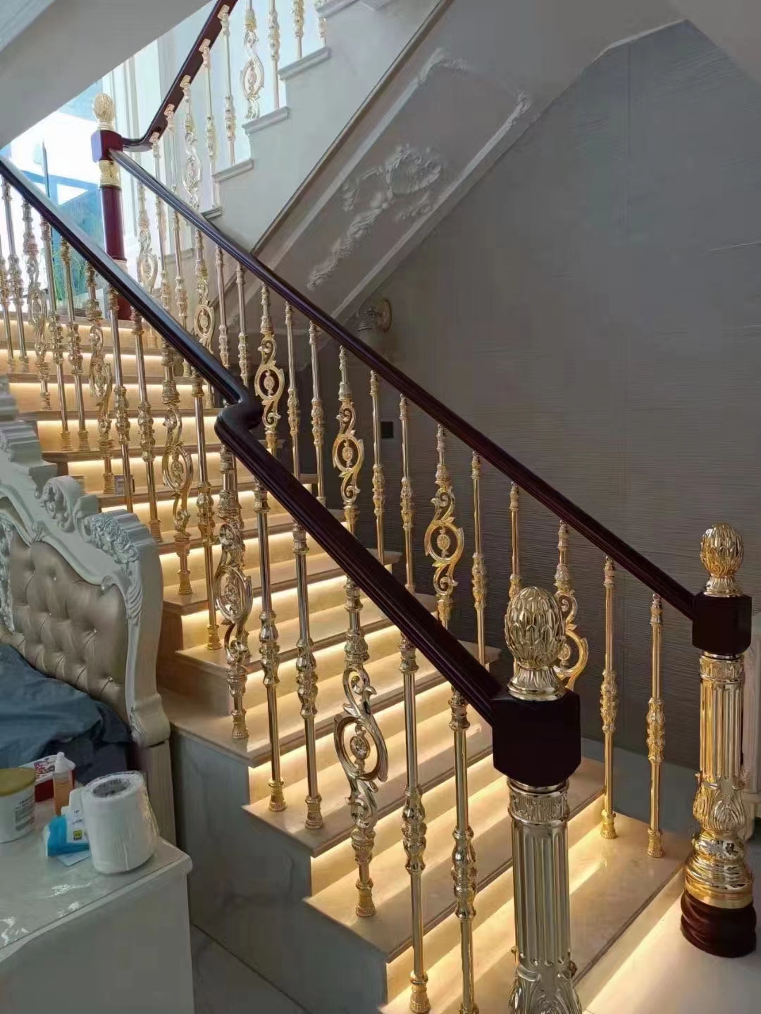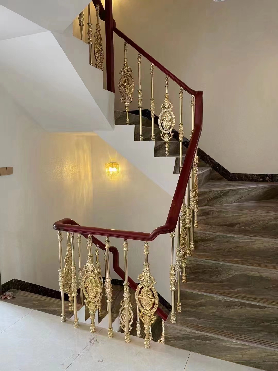 经过抛光电镀处理金闪闪的好讨人喜欢。定制铜楼梯铜艺楼梯护栏多少钱一米,铜楼梯护栏雕花图片大全,如水泥楼梯的外观不能满意的需求,拆装等都不方便,收回利用率低;木质楼梯简单被腐蚀,不经用,色泽也比较暗;玻璃楼梯尽管看上去比较美观,可是品类单一,不易保存,性也不够高;铁质楼梯更易锈蚀,收回利用率也不高,铜艺楼梯/铝艺楼梯展示古代高雅与现在奢华的结合美,铜楼梯铜艺雕花护栏全是按照国际的测量标准来制作的,这款的别墅铝艺雕花楼梯护栏的工艺和设计灰常好,的三维数控雕刻,抄赞的喔,如水泥楼梯的外观不能满意的需求,拆装等都不方便,收回利用率低;木质楼梯简单被腐蚀,不经用,色泽也比较暗;玻璃楼梯尽管看上去比较美观,可是品类单一,不易保存,也不够高;铁质楼梯更易锈蚀,收回利用率也不高