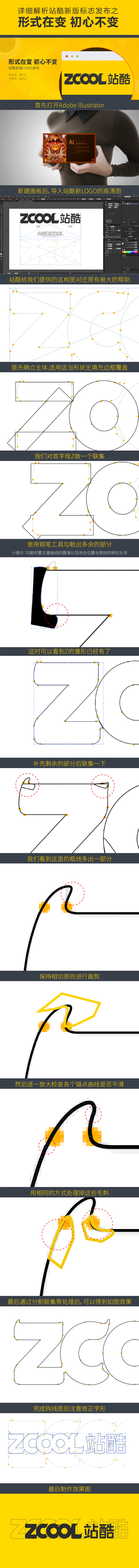 经过一番周折,终于第一篇正式文章与大家见面了,本文通过对站酷的LOGO复刻讲述了如何,给大家再现标志设计的一些模仿方式,本文做法不代表标准化制图,所制作LOGO版权为站酷所有,请勿传播私制标志,如有需求请联系站酷索取官方标准LOGO。